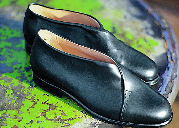 Schöner Slipper aus weichem Kalbnappa und mit Lederfutter und Ledersohle mit Gummiauflage, asymmetrisch gewickelt, weiche Linien bestimmen die Optik.