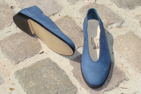 Einfacher, eleganter Schuh in Ballerinaform, bei dem der schön geschwungene Abschluß ein besonderer Blickfang ist. Aus kräftigen, glatten Nappaleder gefertigt, welches erstmal eingelaufen werden muss. Mit eleganter aber fester Ledersohle mit Gummiauflage und einem eingearbeitetem Korkfußbett das für locker-entspanntes Stehen und Gehen sorgt.