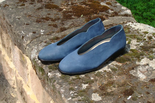 Einfacher, eleganter Schuh in Ballerinaform, bei dem der schön geschwungene Abschluß ein besonderer Blickfang ist.