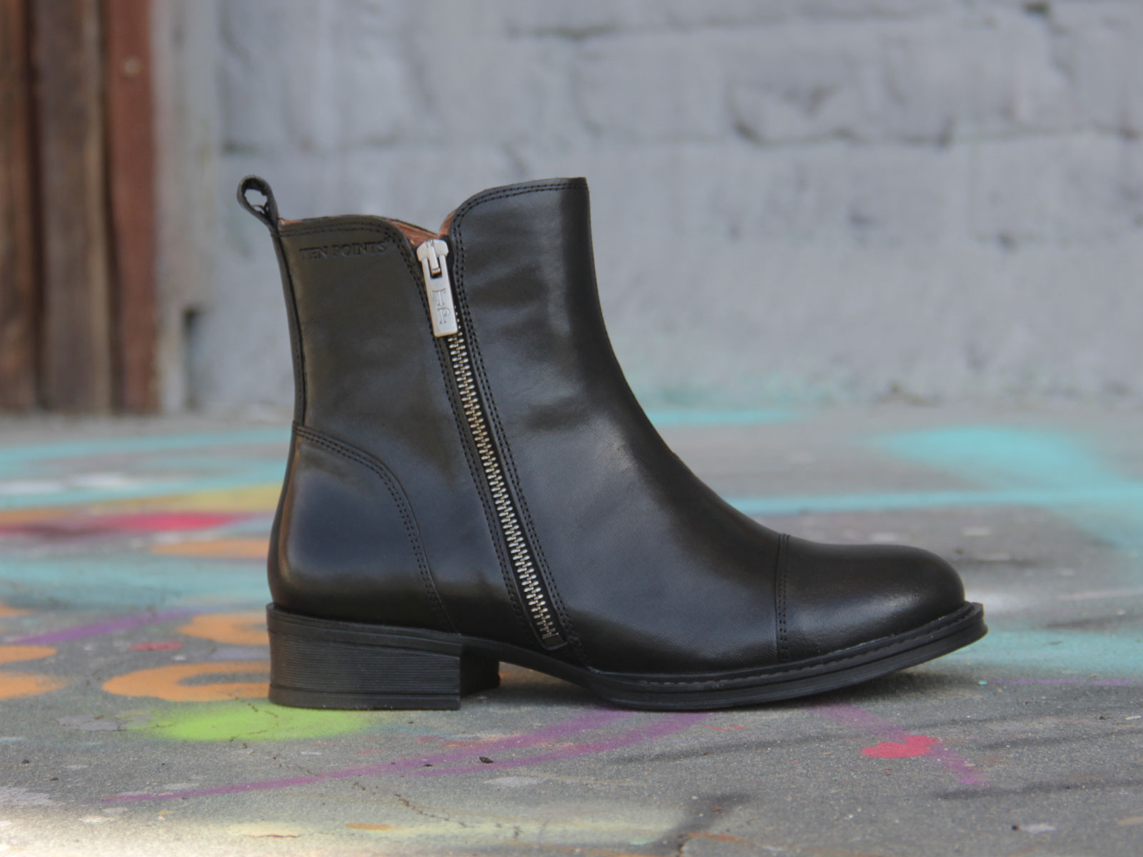 Modischer Boot mit praktischer Anziehschlaufe Modischer Casual-Look aus dem Ökoprogramm von Ten Points. ANIKE lässt sich gleichermaßen gut zu Jeans wie zu sportlich-eleganten Outfits oder auch unter Kleidern tragen. Das weiche und chromfrei gegerbte Rindleder ist bis ins Detail sorgfältig verarbeitet und bekommt mit der Zeit eine schöne Patina. Ein seitlicher Reißverschluss und eine praktische Anziehschlaufe sorgen für einen leichten Einstieg. Eine rutschhemmende Gummi-Sohle mit kleinem, etwa 2,5 cm hohem Absatz sorgt für guten und sicheren Halt. ANIKE ist ein Modell aus der aktuellen Öko-Herbstkollektion von Ten Points. Das Design kommt aus Schweden, gefertigt werden die Schuhe in Portugal. Das Label steht für traditionelle Handwerkskunst, langlebige Materialien und viel Komfort.