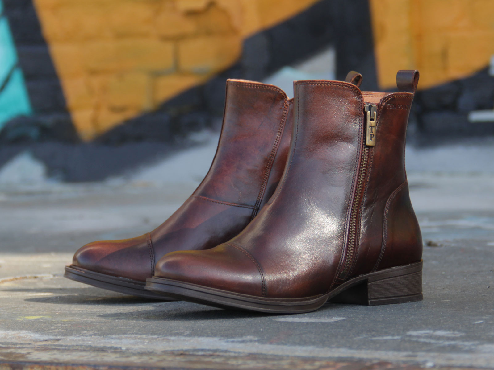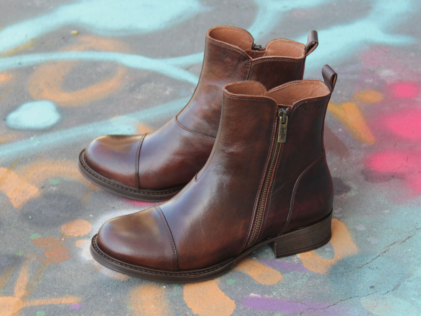 Modischer Boot mit praktischer Anziehschlaufe Modischer Casual-Look aus dem Ökoprogramm von Ten Points. ANIKE lässt sich gleichermaßen gut zu Jeans wie zu sportlich-eleganten Outfits oder auch unter Kleidern tragen. Das weiche und chromfrei gegerbte Rindleder ist bis ins Detail sorgfältig verarbeitet und bekommt mit der Zeit eine schöne Patina. Ein seitlicher Reißverschluss und eine praktische Anziehschlaufe sorgen für einen leichten Einstieg. Eine rutschhemmende Gummi-Sohle mit kleinem, etwa 2,5 cm hohem Absatz sorgt für guten und sicheren Halt. ANIKE ist ein Modell aus der aktuellen Öko-Herbstkollektion von Ten Points. Das Design kommt aus Schweden, gefertigt werden die Schuhe in Portugal. Das Label steht für traditionelle Handwerkskunst, langlebige Materialien und viel Komfort.