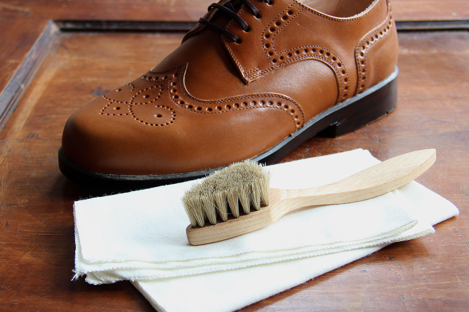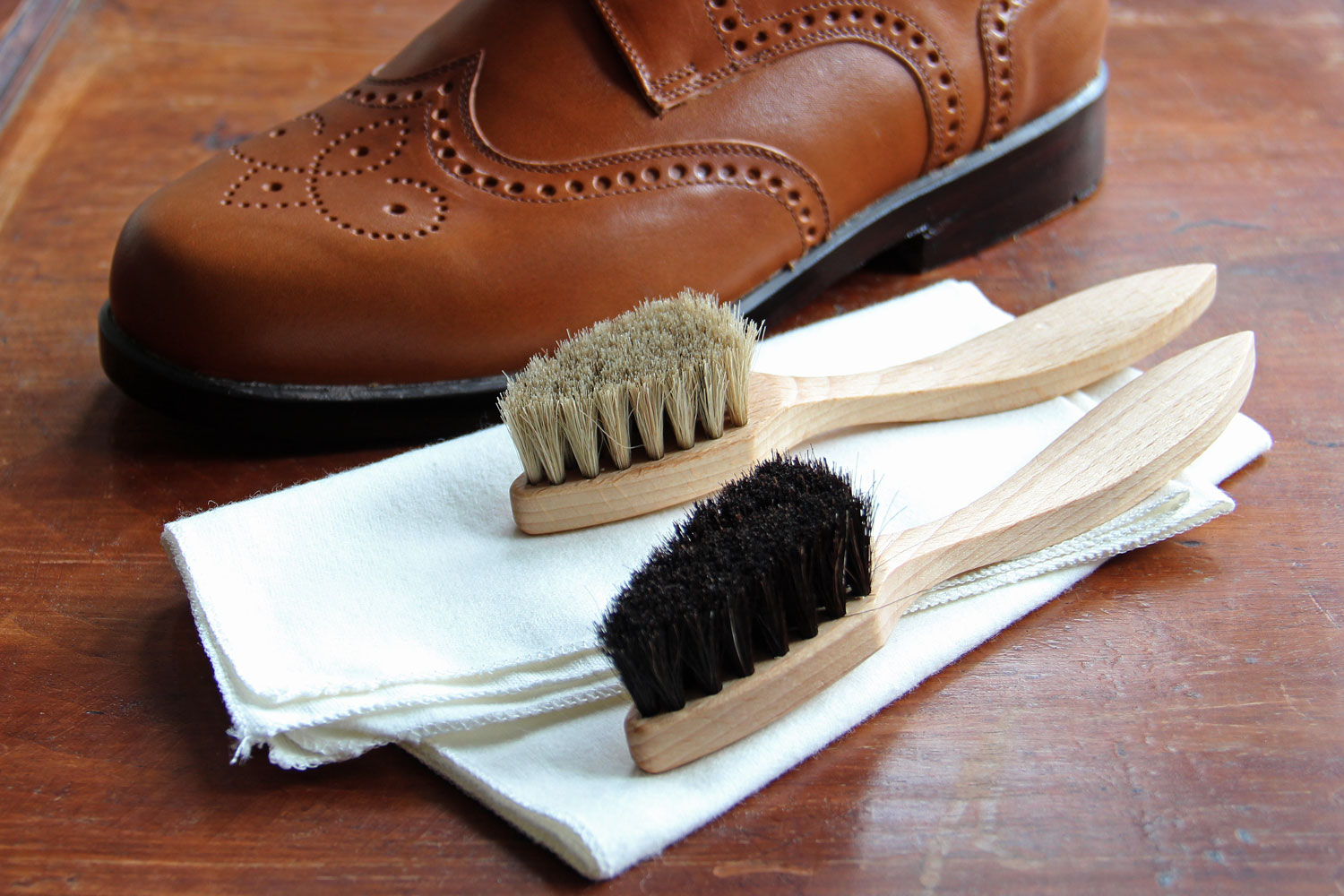 Hochwertige Bürsten zum Auftragen und Einmassieren der Schuhpflegemittel. Die Bürsten sind aus geöltem Buchenholz in schöner und ergonomisch geschwungener Form. Mit hellem oder dunklem Rosshaar.