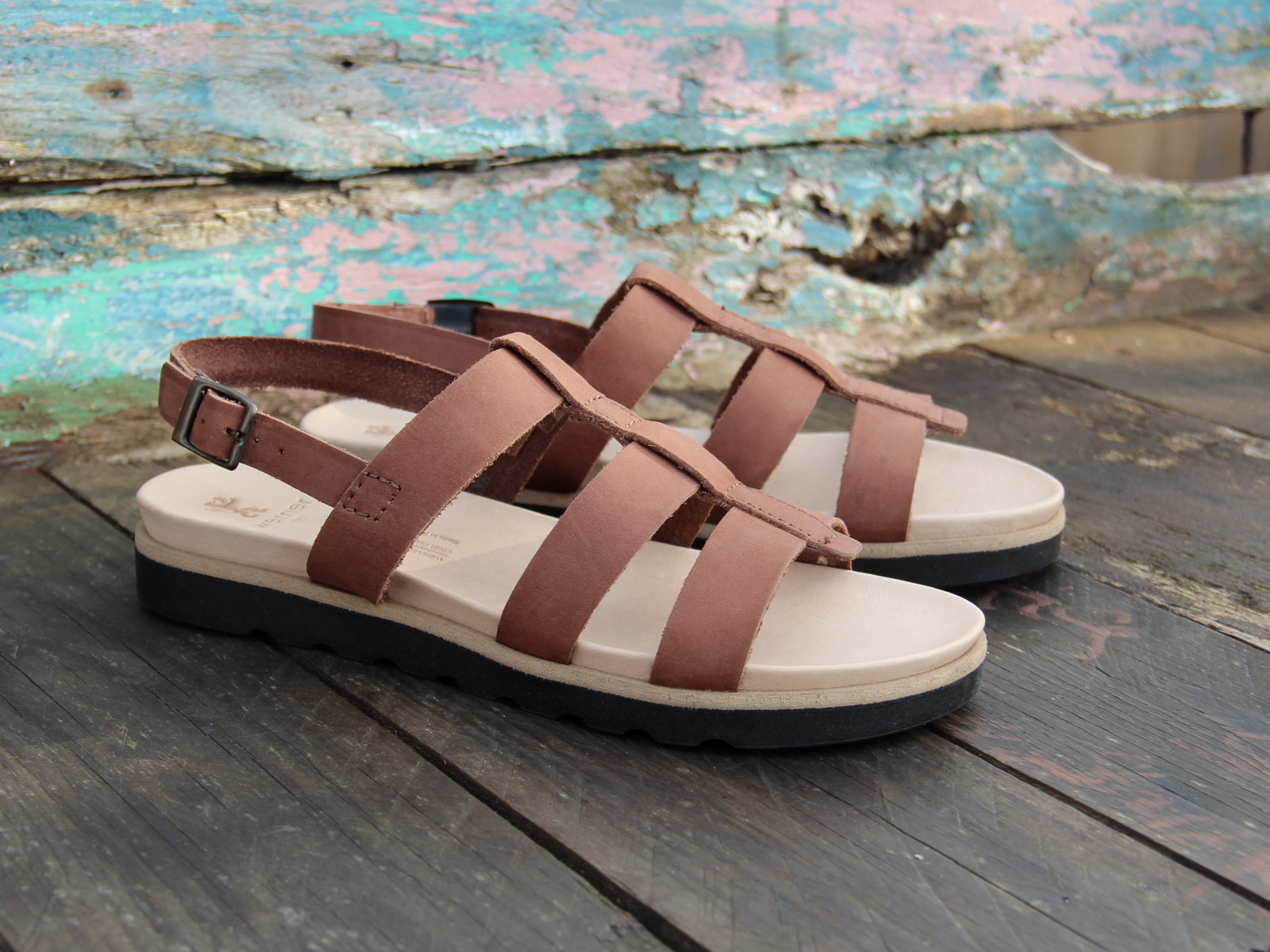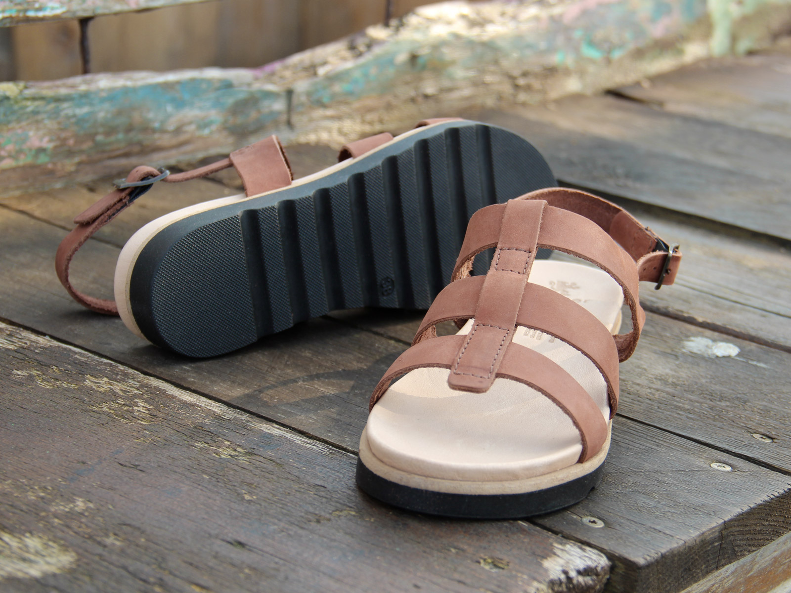 Offen, leicht, bequem – die nachhaltige flache Damensandale DANA, lässt den Füßen viel Freiheit und gibt dennoch guten Halt. Die schlichte Form lässt sich ebenso gut zu Jeans tragen wie zu verspielten Blumenkleidern. Das Design kommt aus Schweden, gefertigt werden die Schuhe in Portugal. Das weiche, fein strukturierte Rindleder ist pflanzlich gegerbt und frei von Chrom. Es wird gewachst und gebürstet, um einen besonders schönen Glanz zu bekommen. Die gepolsterte Innensohle ist im Zehenbereich mit Oberleder, im hinteren Bereich mit Futterleder bezogen, das auch an warmen Tagen für viel Komfort und ein gutes Trageklima sorgt. Die leichte Sohle ist rutschfest, der Absatz ist 8 mm hoch und hat eine trittsichere Auflage aus Gummi. DANA ist ein Modell aus dem Ökoprogramm des schwedischen Herstellers Ten Points, der Funktionalität mit viel Komfort verbindet und langlebige Materialien einsetzt. Die Sandalen werden in Schweden entworfen und in Portugal gefertigt.