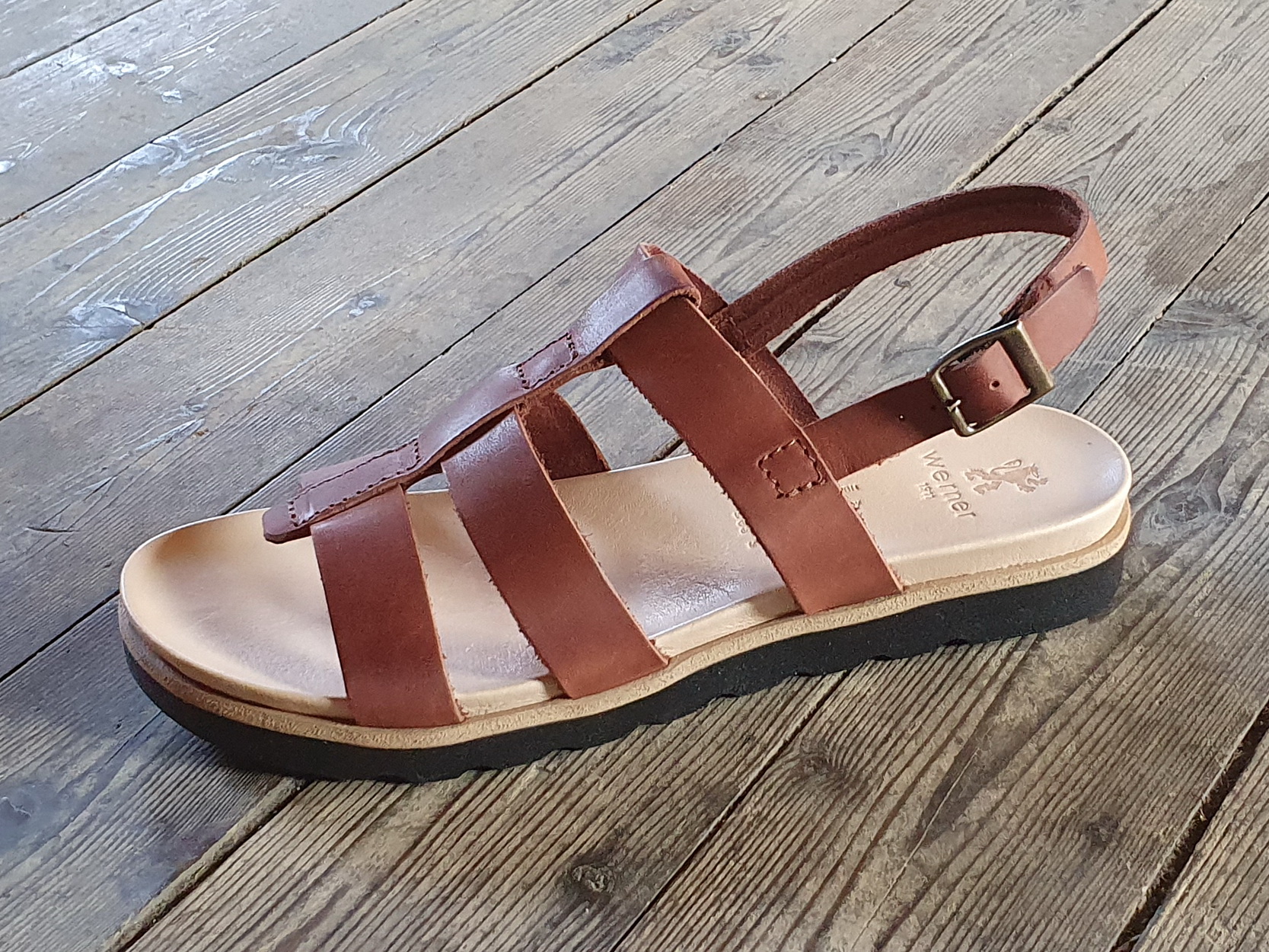 Zeitloser Schnitt und bequeme Form - klassische Römersandale mit gepolsterter Sohle. LIV lässt den Füßen viel Freiheit und bietet gleichzeitig einen guten Halt. Die Gummisohle ist abrieb- und rutschfest und dämpft den Aufritt und sorgt für unbeschwertes Gehen. Der Hersteller Werner Schuhe legt großen Wert auf nachhaltige Fertigung und faire Produktionsbedingungen. Alle Ober- und Futterleder werden chromfrei und pflanzlich in Deutschland gegerbt.