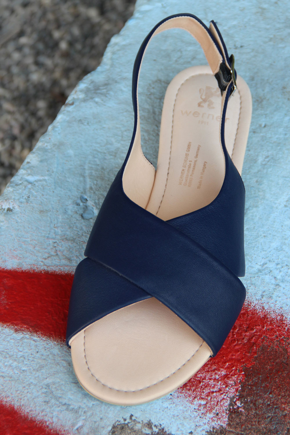 Elegant-modische Biosandale mit Absatz. Mit angenehm weichem pflanzlich gegerbtem Nappaleder. Der mit Leder überzogene Gummizug passt sich angenehm dem Fuß an und sorgt so für einen perfekten Sitz. Die Lauffläche ist leicht gepolstert. Für einen eleganten Auftritt im Sommer, egal ob unter einem eleganten Sommerkleid, einem sommerlichen Blumenkleid oder auch unter Shorts. Der deutsche Hersteller WERNER garantiert faire Arbeitsbedingungen und die Einhaltung hoher soziale Standards. Alle Rohmaterialien stammen aus Deutschland und den europäischen Nachbarländern, was eine gleichbleibend hohe Qualität garantiert und die Transportwege so kurz wie möglich hält.