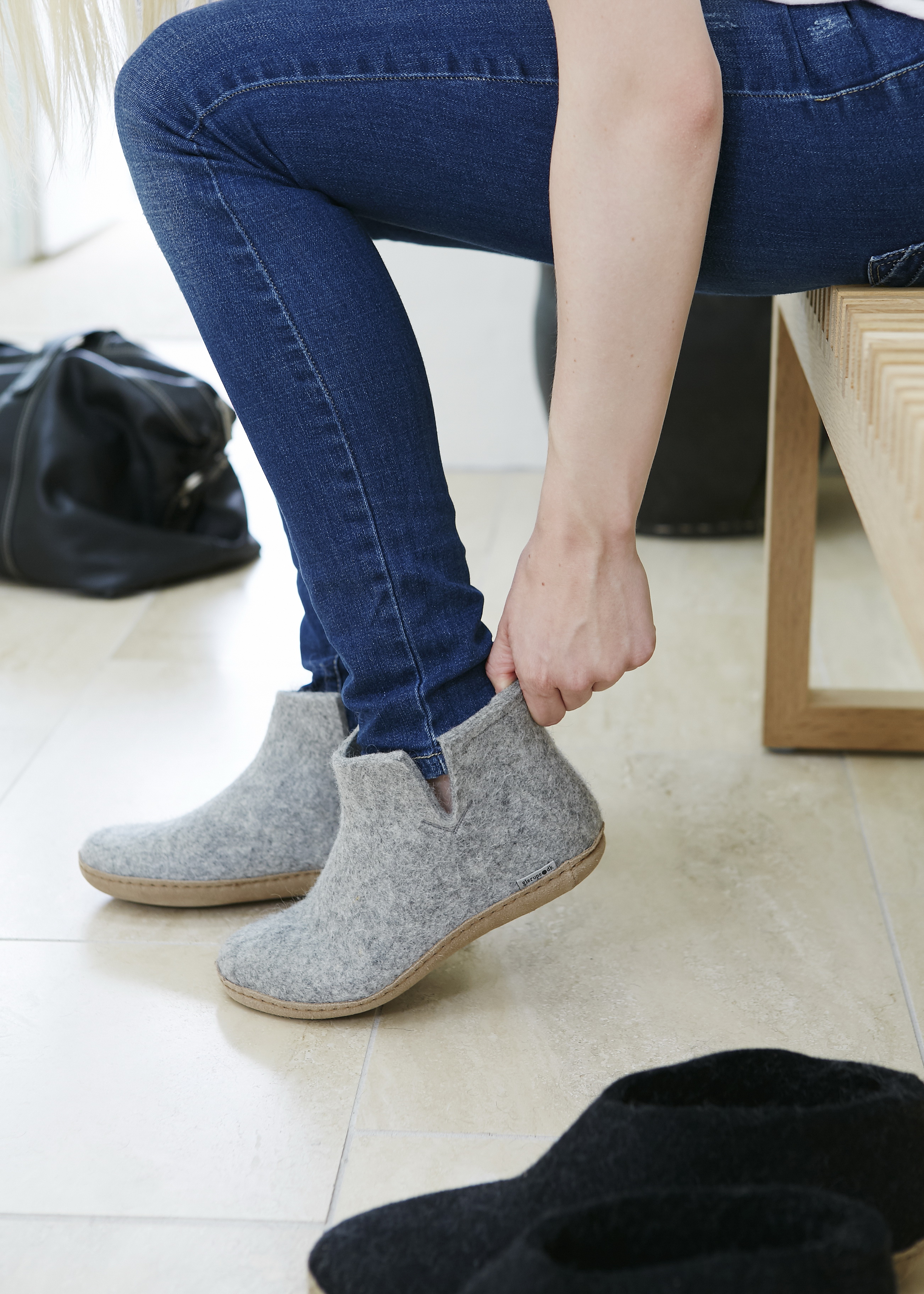 Natürliche Materialien, minimalistisches Design, gute Passform und hervorragende Verarbeitung lassen den Filzboot nicht nur schön aussehen, er wärmt auch noch wunderbar.