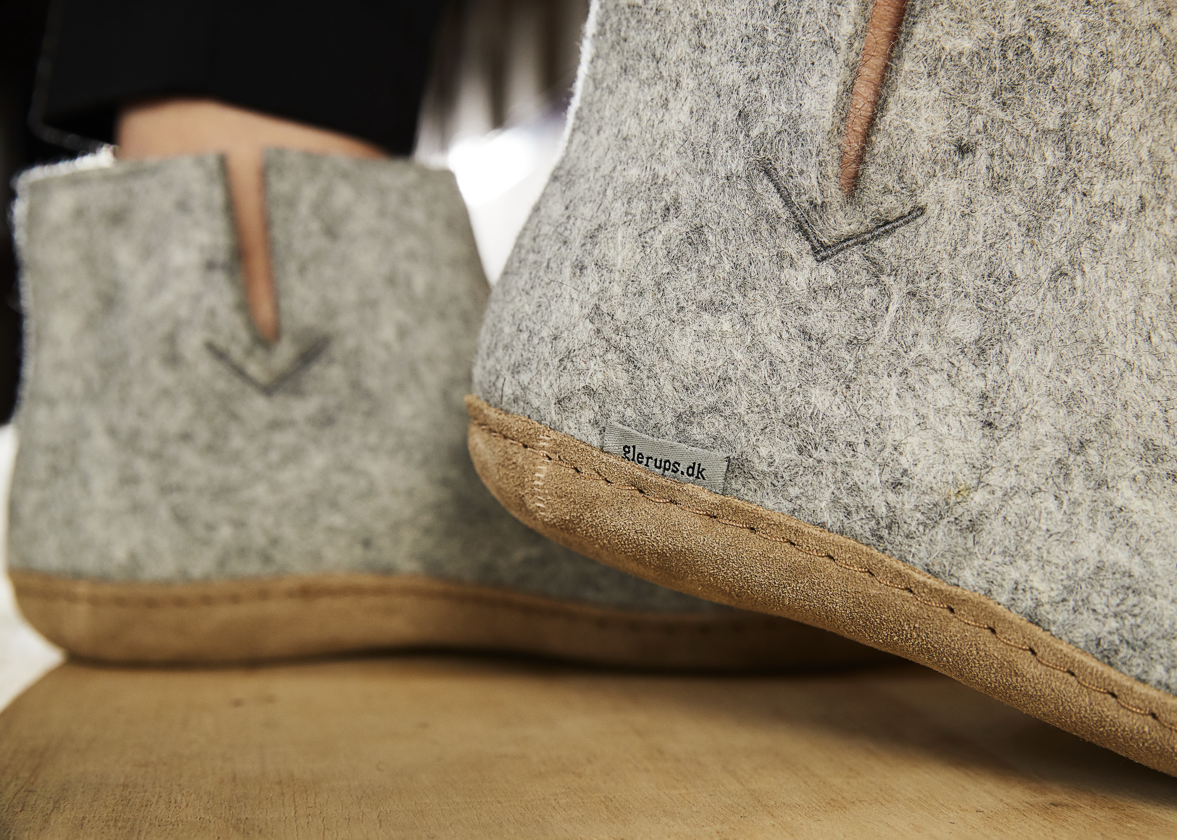 Glerups Pantoffel, Schuhe und Filzboots sind bekannt für ihren außergewöhnlichen Komfort. Bei der Herstellung wird eine weiche Wollmischung nicht chemisch, sondern natürlich und schonend behandelt. Die Wolle wird in weichem Wasser gewaschen, dann gekämmt und gefilzt. Der Filz wird zu Socken geformt, die für eine perfekte Passform dampfgefilzt werden, bevor weiche Sohlen aus chromfreiem Leder aufgeklebt und vernäht werden. So entstehen Schuhe, die nicht jucken und herrlich bequem und weich sind.