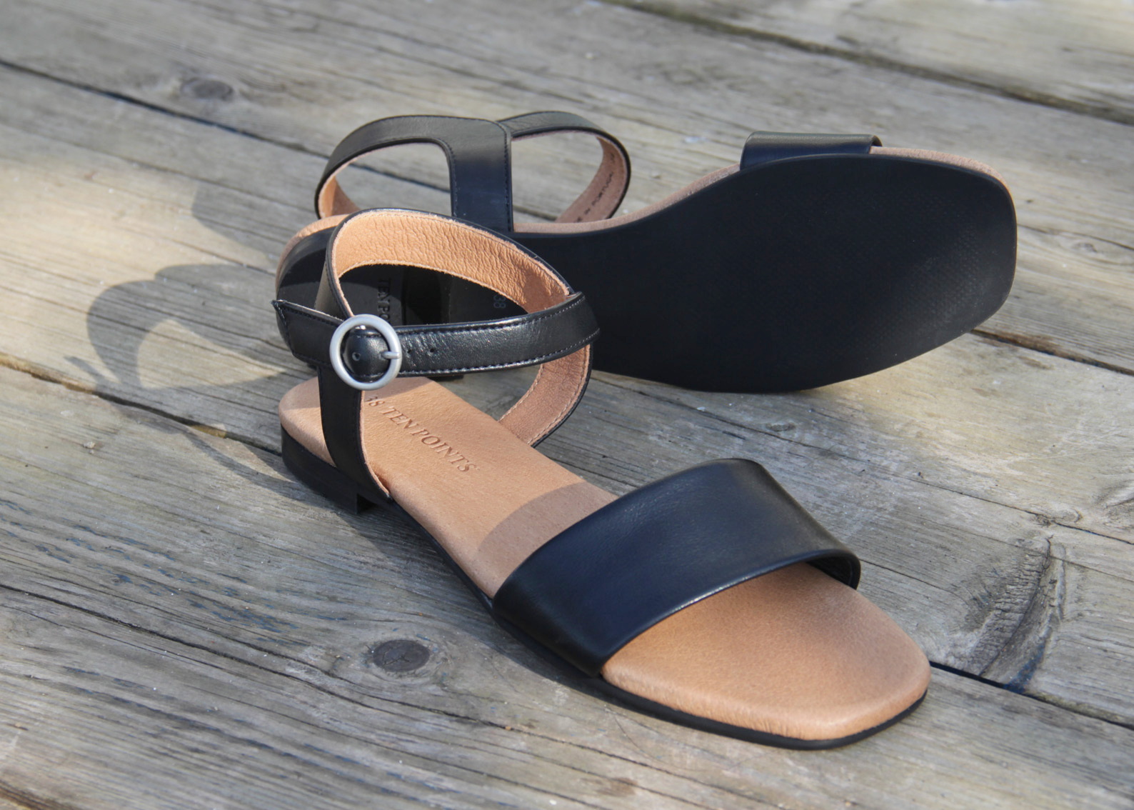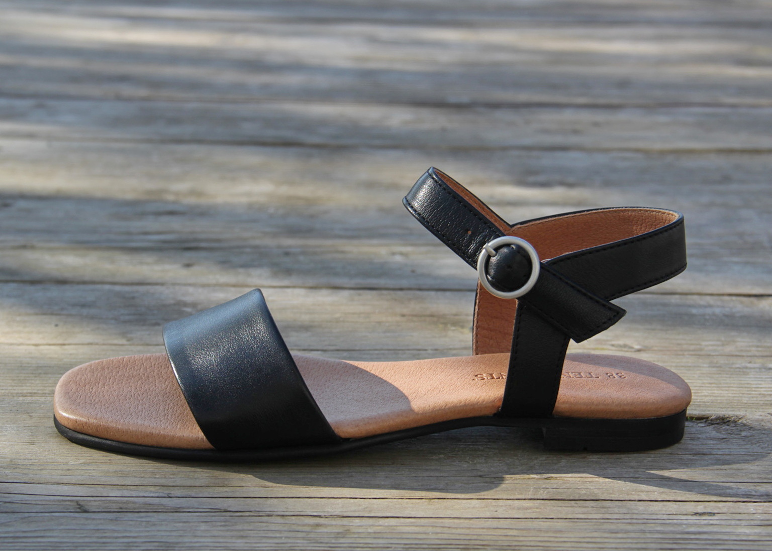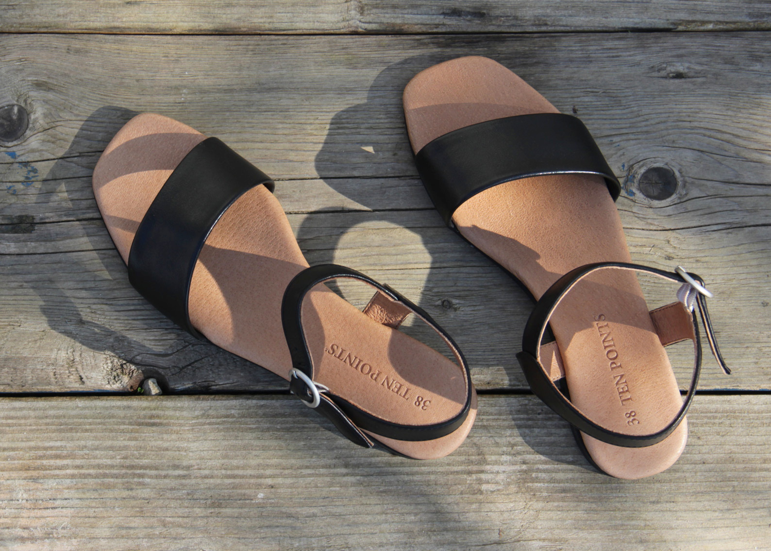 Offen, leicht, bequem – die nachhaltige flache Damensandale DANA, lässt den Füßen viel Freiheit und gibt dennoch guten Halt. Die schlichte Form lässt sich ebenso gut zu Jeans tragen wie zu verspielten Blumenkleidern. Das Design kommt aus Schweden, gefertigt werden die Schuhe in Portugal. Das weiche, fein strukturierte Rindleder ist pflanzlich gegerbt und frei von Chrom. Es wird gewachst und gebürstet, um einen besonders schönen Glanz zu bekommen. Die gepolsterte Innensohle ist im Zehenbereich mit Oberleder, im hinteren Bereich mit Futterleder bezogen, das auch an warmen Tagen für viel Komfort und ein gutes Trageklima sorgt. Die leichte Sohle ist rutschfest, der Absatz ist 8 mm hoch und hat eine trittsichere Auflage aus Gummi. DANA ist ein Modell aus dem Ökoprogramm des schwedischen Herstellers Ten Points, der Funktionalität mit viel Komfort verbindet und langlebige Materialien einsetzt. Die Sandalen werden in Schweden entworfen und in Portugal gefertigt.