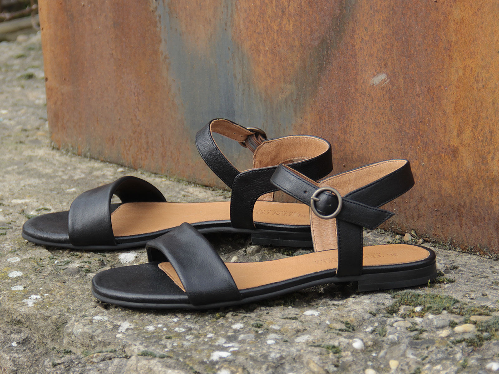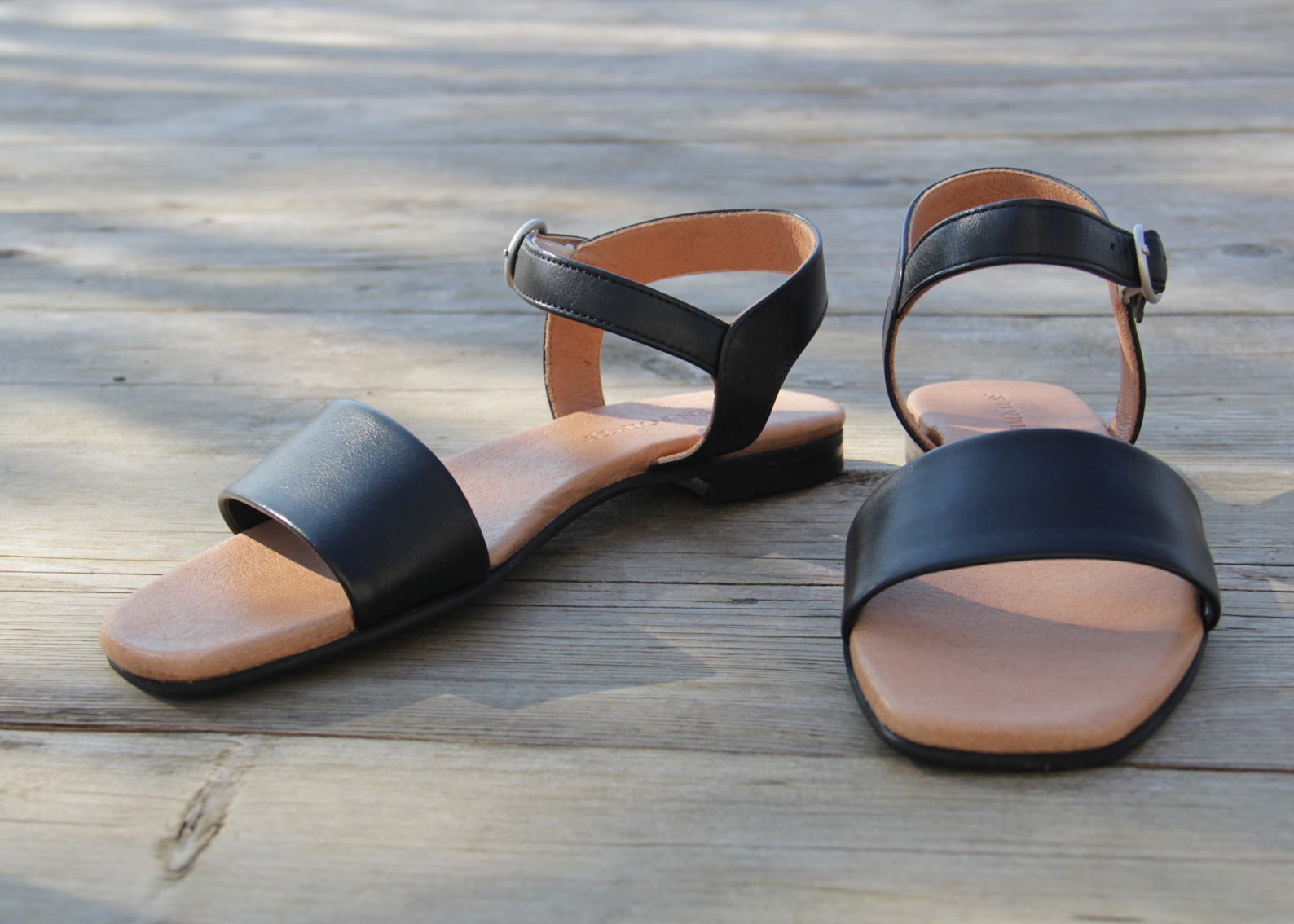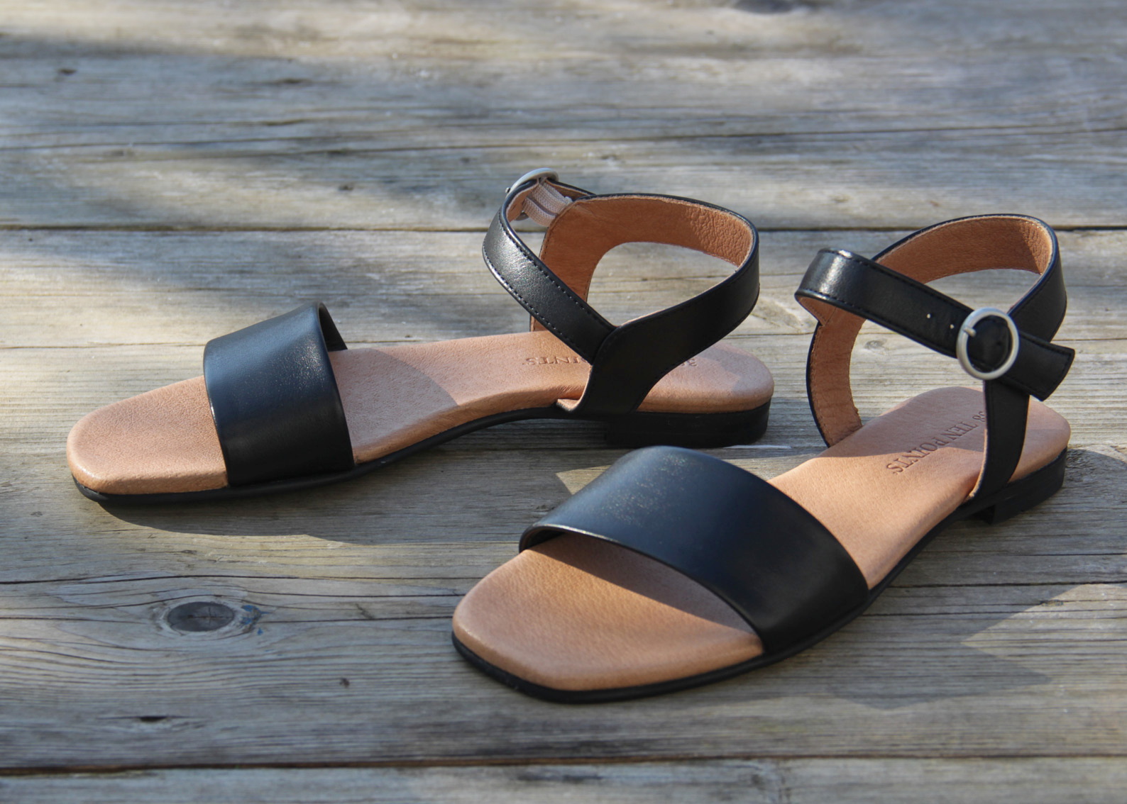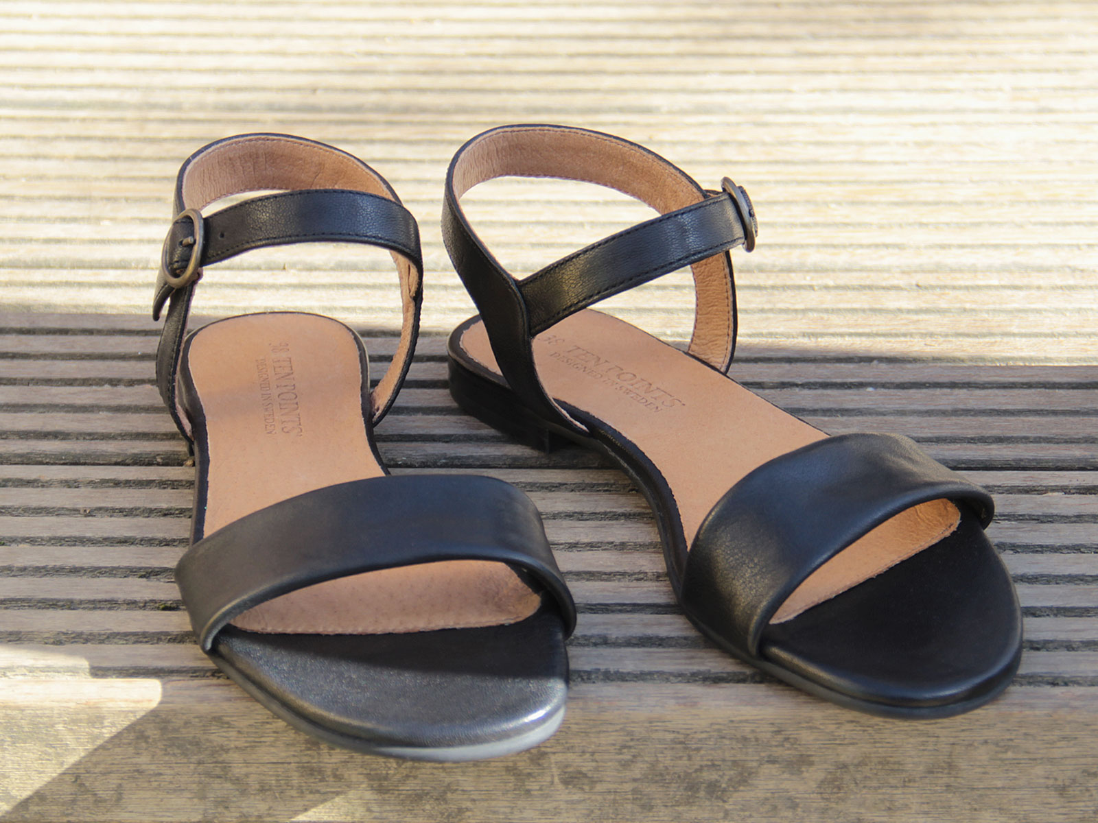 Offen, leicht, bequem – die nachhaltige flache Damensandale DANA, lässt den Füßen viel Freiheit und gibt dennoch guten Halt. Die schlichte Form lässt sich ebenso gut zu Jeans tragen wie zu verspielten Blumenkleidern. Das Design kommt aus Schweden, gefertigt werden die Schuhe in Portugal. Das weiche, fein strukturierte Rindleder ist pflanzlich gegerbt und frei von Chrom. Es wird gewachst und gebürstet, um einen besonders schönen Glanz zu bekommen. Die gepolsterte Innensohle ist im Zehenbereich mit Oberleder, im hinteren Bereich mit Futterleder bezogen, das auch an warmen Tagen für viel Komfort und ein gutes Trageklima sorgt. Die leichte Sohle ist rutschfest, der Absatz ist 8 mm hoch und hat eine trittsichere Auflage aus Gummi. DANA ist ein Modell aus dem Ökoprogramm des schwedischen Herstellers Ten Points, der Funktionalität mit viel Komfort verbindet und langlebige Materialien einsetzt. Die Sandalen werden in Schweden entworfen und in Portugal gefertigt.