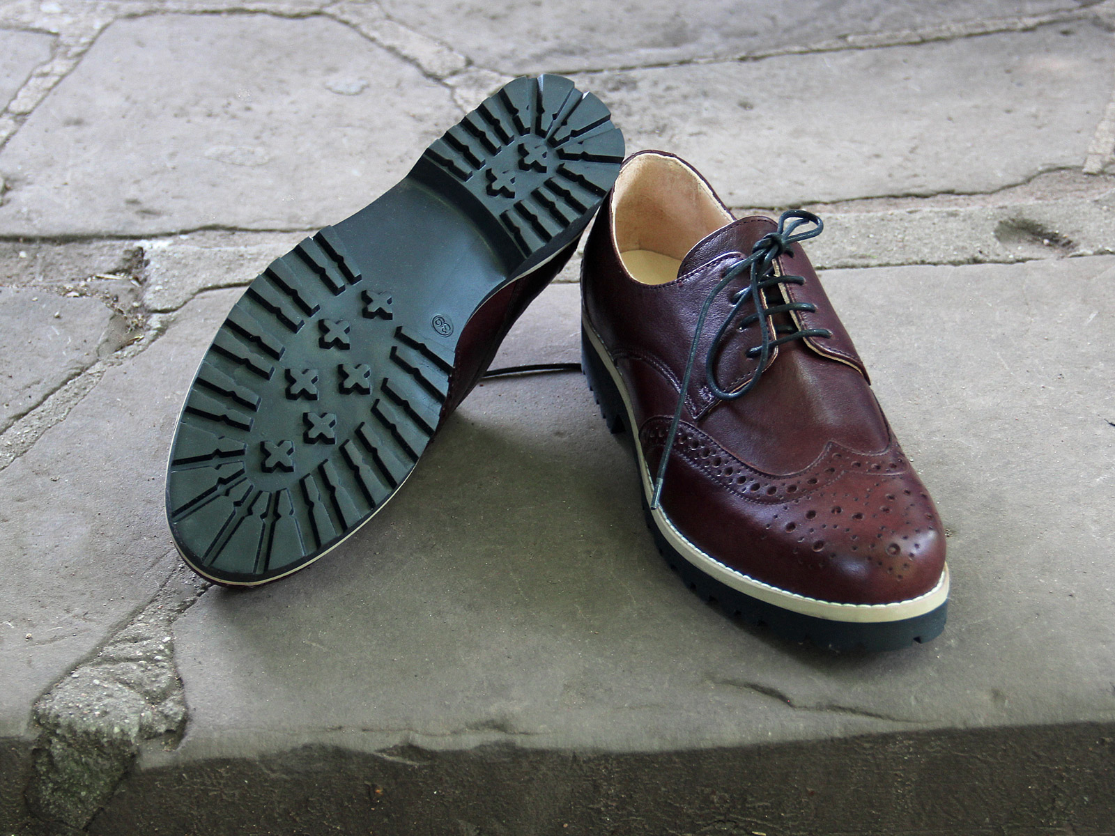 Der Schnitt ist zeitlos, das Design zeigt schöne Details wie die farblich prägnant abgesetzte Zwischensohle und die fein gearbeiteten Lyralochung.