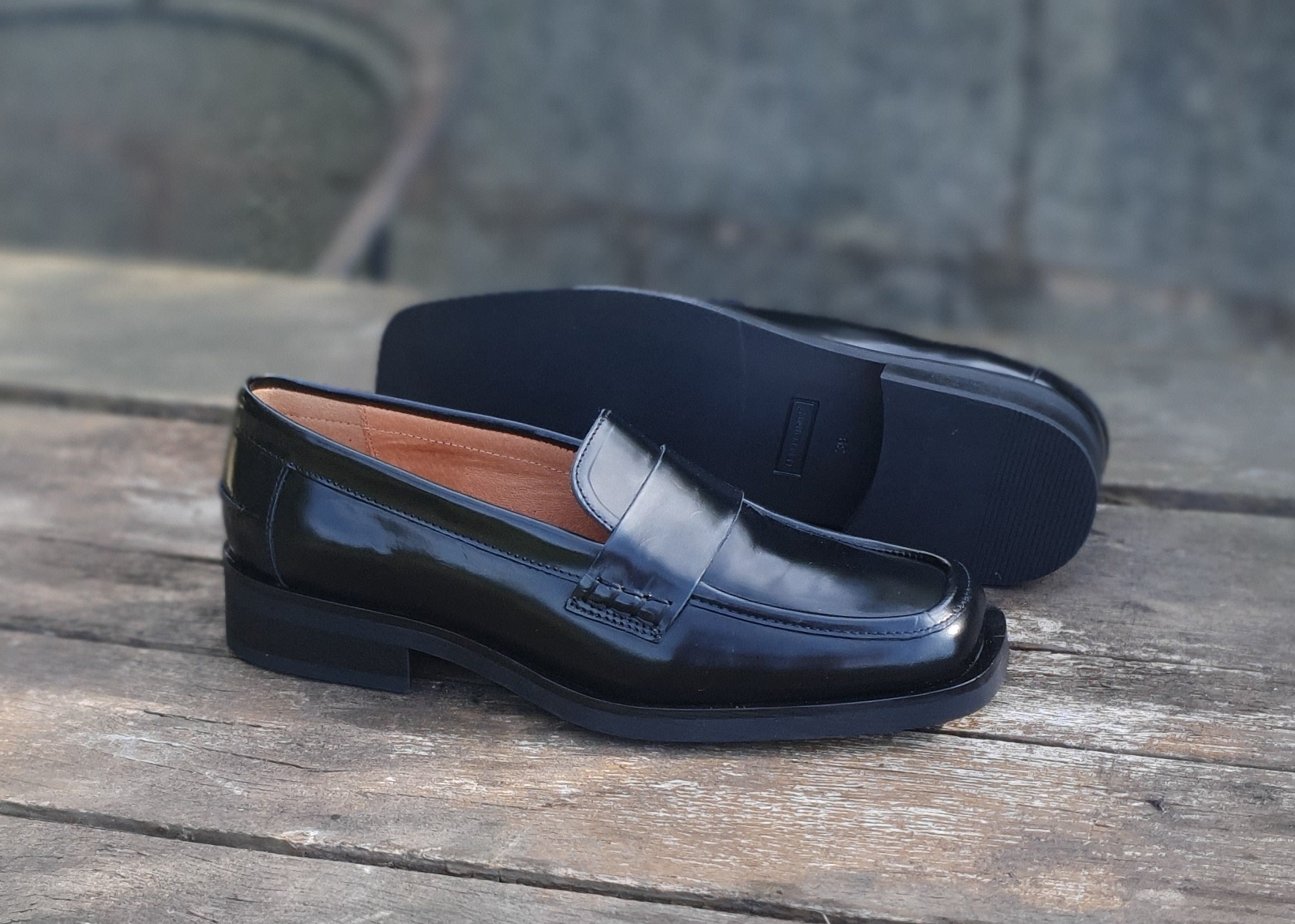 Schöner Loafer in kornblumenblau mit einer sehr bequemen Passform – ein «Must have» für Frühlingstage. Lange galten Loafer als eher bieder und konservativ – jetzt aber tragen selbst Modebloggerinnen die Schuhe wieder mit Begeisterung. Durch die hell abgesetzten Sohlen und den leichten Absatz wirken sie feminin und sind trotzdem bequem. Ein idealer Schuh, wenn man sich nicht sicher ist, ob man eher casual oder schick unterwegs sein möchte. Die klassische Slipper-Form kommt durch das robuste Glattleder mit leichtem Glanz gut zur Geltung. Das Oberleder bekommt mit der Zeit eine schöne Patina. Um den besonderen Look von Struktur und Glanz zu bekommen, wird es in verschiedenen Techniken gewachst und gebürstet. Alle Leder sind pflanzlich gegerbt und frei von Chrom. Die gepolsterte Innensohle ist mit chromfreiem Futterleder bezogen und herausnehmbar. Die Laufsohle hat eine rutschfeste Auflage aus Gummi. Sohle und Schaft sind miteinander vernäht. Diese sogenanten «Blake-Machart» kommt ohne Rahmennaht und Zwischensohle aus, was durchgenähte Schuhe sehr leicht und flexibel macht. Das Design der Schuhe kommt aus Schweden, produziert werden sie in Portugal – unter fairen Bedingungen und mit einem besonderen Augenmerk auf Nachhaltigkeit.