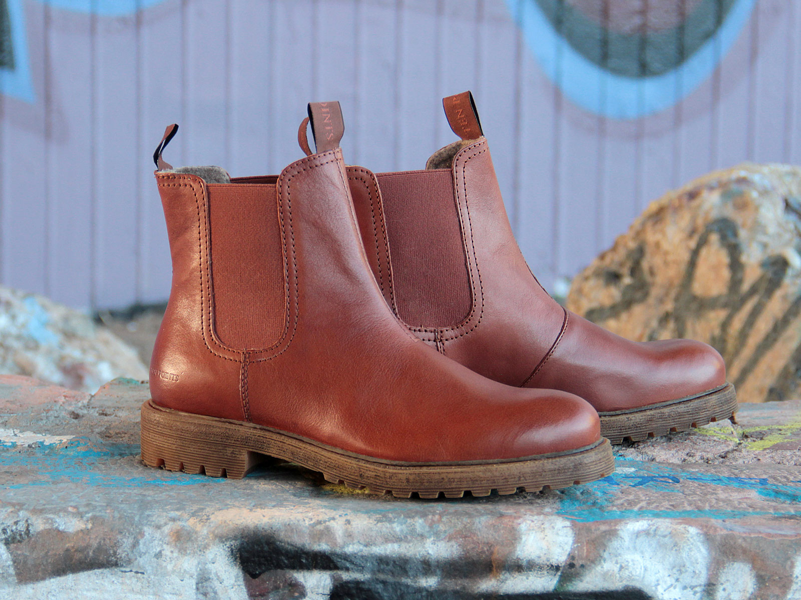 Bequemer Boot mit guter Passform und einem wärmenden Wollfutter. Die knöchelhohe Form mit zwei praktischen Anziehschlaufen ist klassisch geschnitten und lässt sich gut zu sportlichen Outfits kombinieren. Durch die Stretcheinsätze an beiden Seiten sitzt ESKIL perfekt am Fuß.