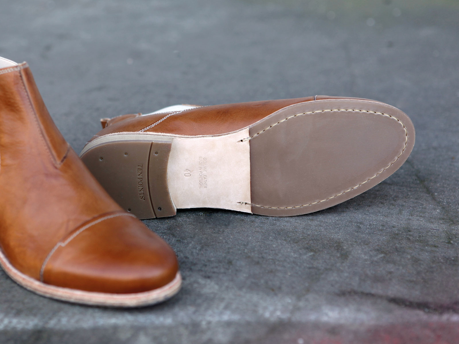 Bequemer und eleganter Damenökoschuh Gepflegter Casual-Look: nordisches Design und hochwertiges Leder in einer warmen Erdfarbe machen die Chelsea Stiefelette RONA zu einem perfekten Schuh für Frühlingstage. Das weiche Rindleder ist bis ins Detail sorgfältig verarbeitet und bekommt mit der Zeit eine schöne Patina. Die hellen Ziernähte betonen die schwungvolle Linienführung. Die Stiefelette lässt sich gleichermaßen gut zu Jeans wie zu sportlich-eleganten Outfits tragen. RONA gehört zum Ökoprogramm des schwedischen Herstellers Ten Points, der Funktionalität mit viel Komfort verbindet und langlebige Materialien einsetzt. Alle Leder sind pflanzlich gegerbt und chromfrei. Die rutschfesten Sohlen sind aus TR-Gummi. Durch die Stretcheinsätze an beiden Seiten sitzt der Schuh bequem am Fuß. Ein weiches Innenfutter aus atmungsaktivem Leder sorgt auch an warmen Tagen für ein gutes Klima im Schuh. Die gepolsterte Innensohle ist herausnehmbar. Ten Points Schuhe werden in Schweden entworfen und in Portugal fair und nachhaltig produziert.