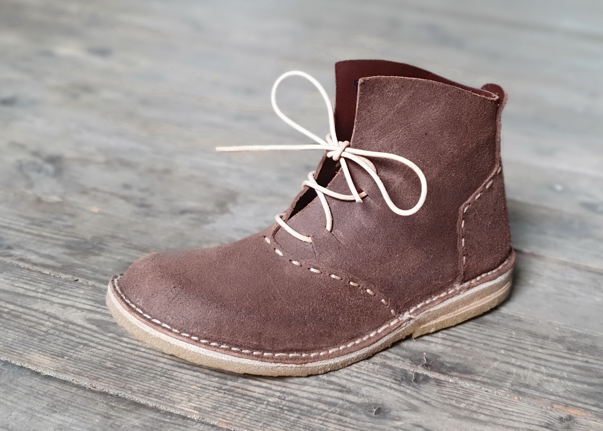 Nachhaltiger Bio Damenstiefel Herrlich bequeme und weiche Schnürboots aus chromfreiem Leder mit Naturkreppsohle, die man zu jeder Jahreszeit anziehen kann. Einfach schön und focusiert auf das Wesentliche: - gefertigt aus samtig weichem, über zwei Millimeter dickem, pflanzlich gegerbtem und hautverträglichem Rindnubukleder;- das Leder wird mit einer Doppelnaht mit der Lederzwischensohle vernäht: eine Verbindung die garantiert hält;- Naturkreppsohle für umweltschonendes und angenehmes Gehen. Diese Naturboots sehen nicht nur gut aus, sie sind es auch: komplett Deutschland hergestellt - hochwertiges Material, ohne schädliche Chemie, ohne Plastik und synthetische Materialien, ohne EVA, TR oder TPU, ohne kaschierte Kunstoffteile oder Schaumstoffe, ohne aufgesprühte Duftstoffe oder Farbschichten.... Nur Leder, Garn, Naturkrepp (und eine kleine Niete, eine Gelenkfeder aus Buchenholz und Klebstoff für die Sohlenbefestigung)