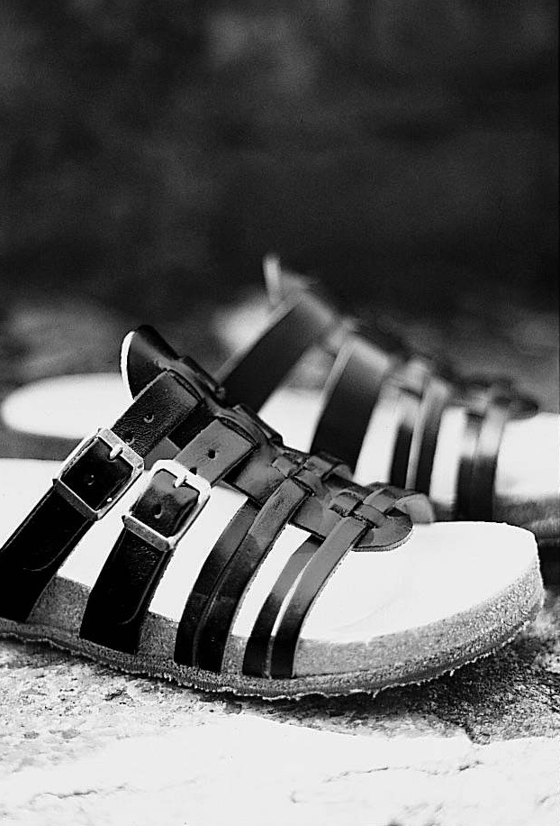 Die Sandalenform ist so gearbeitet, daß der Fuß beim Gehen optimal abrollen kann.
