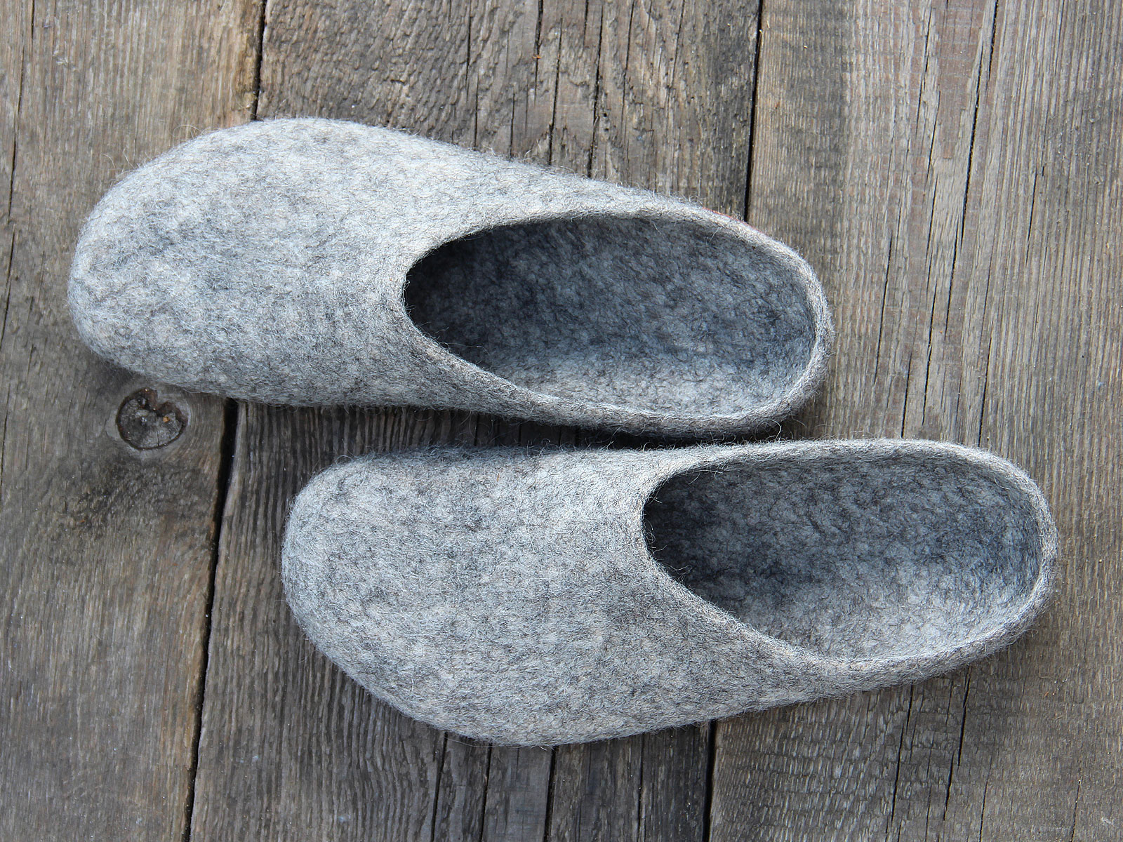Außerordentlich bequeme Filzpantoffel aus naturbelassener Wolle