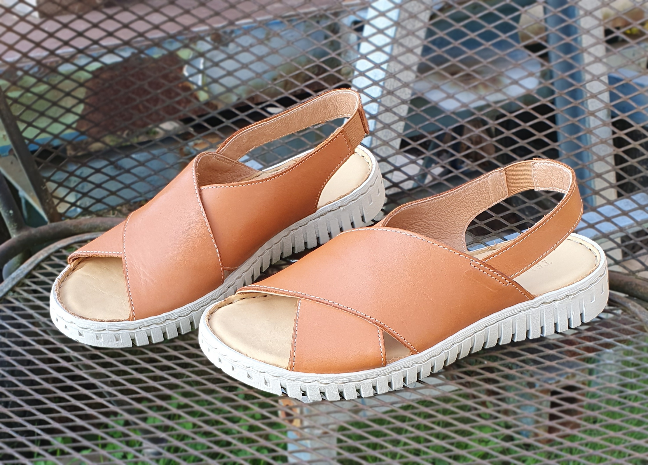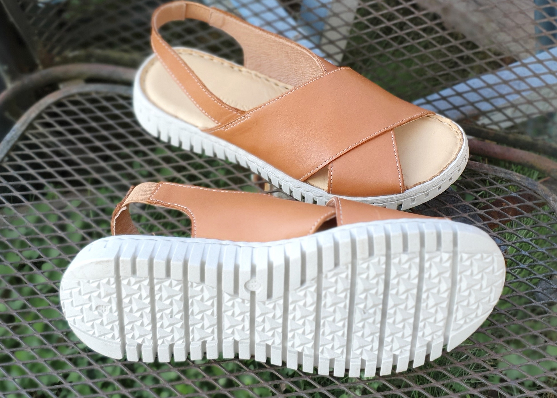 Durch die überkreuzten Riemen und dem elastischen Fersenriemen mit Gummizug, lässt sich diese nachhaltige Sandale einfach an- und ausziehen und sitzt trotzdem perfekt am Fuß.