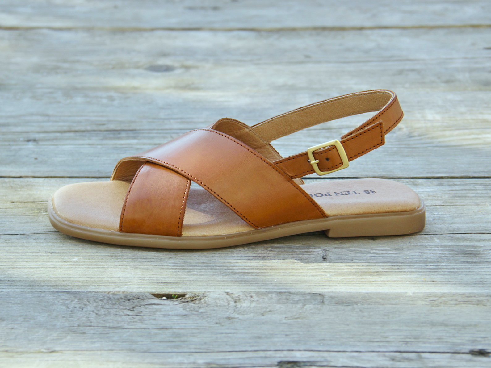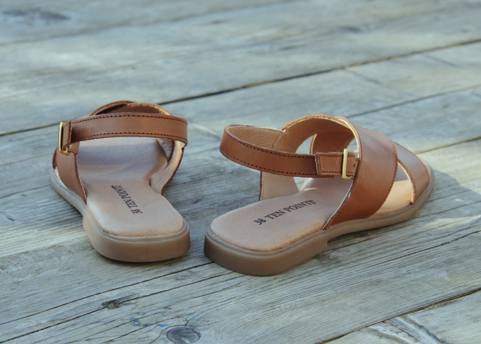 Feminine und zeitlose Riemchensandale aus weichem und metallfreiem Nubukleder aus dem Ökoprogramm von Ten Points. Auch diese Kreuzriemensandale ist Chromfrei und pflanzlich gegerbt.