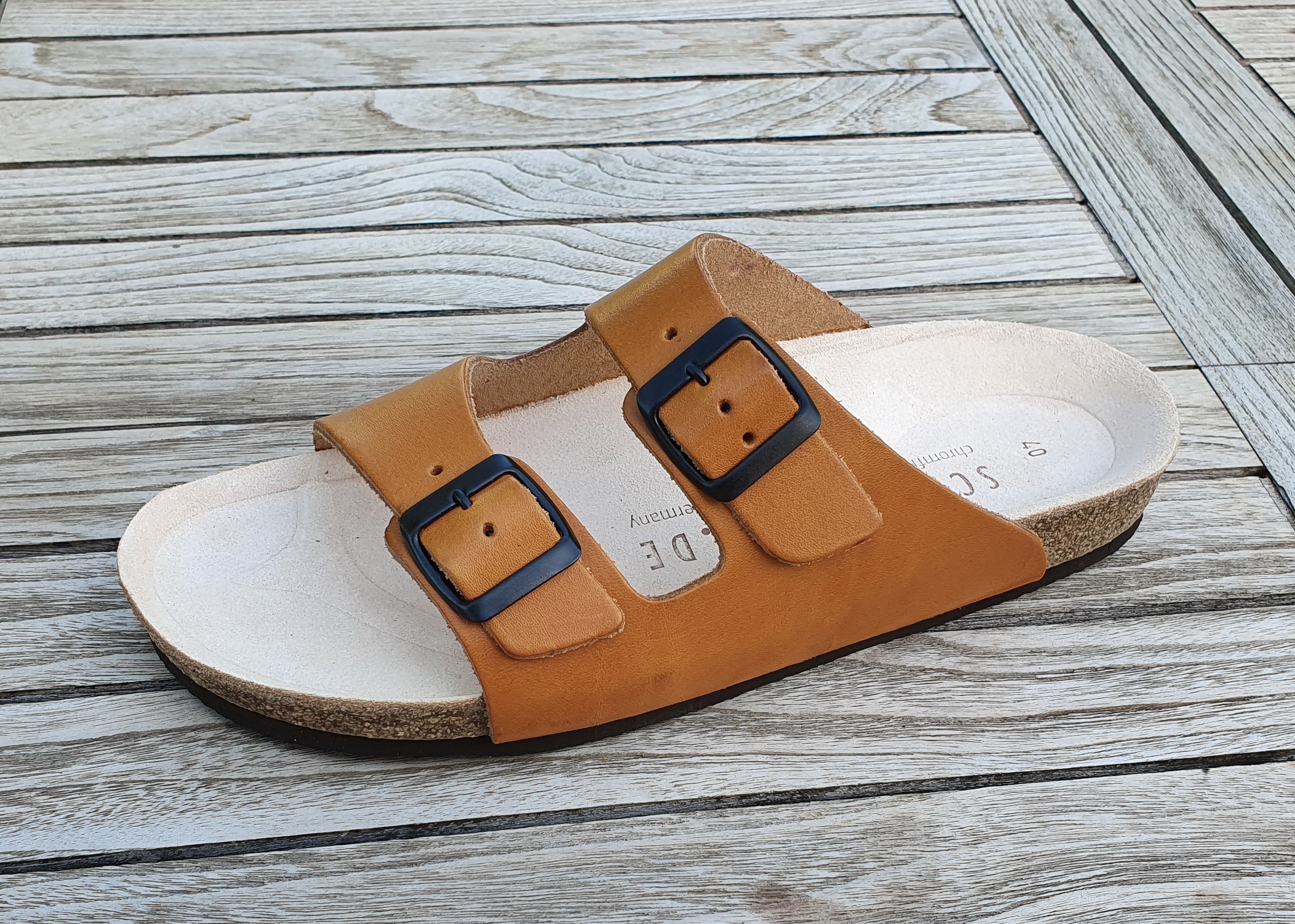 Wir verwenden ausschließlich sehr hochwertiges, pflanzlich gegerbtes, chromfreies Leder. Damit der natürliche Charakter und die guten Eigenschaften des Leders erhalten bleiben, verzichten wir auf Farbbeschichtungen und Zurichtungen. So entstehen lange haltbare Sandalen, die auch bei empflindlicher Haut und Chromatallergien tragbar sind.