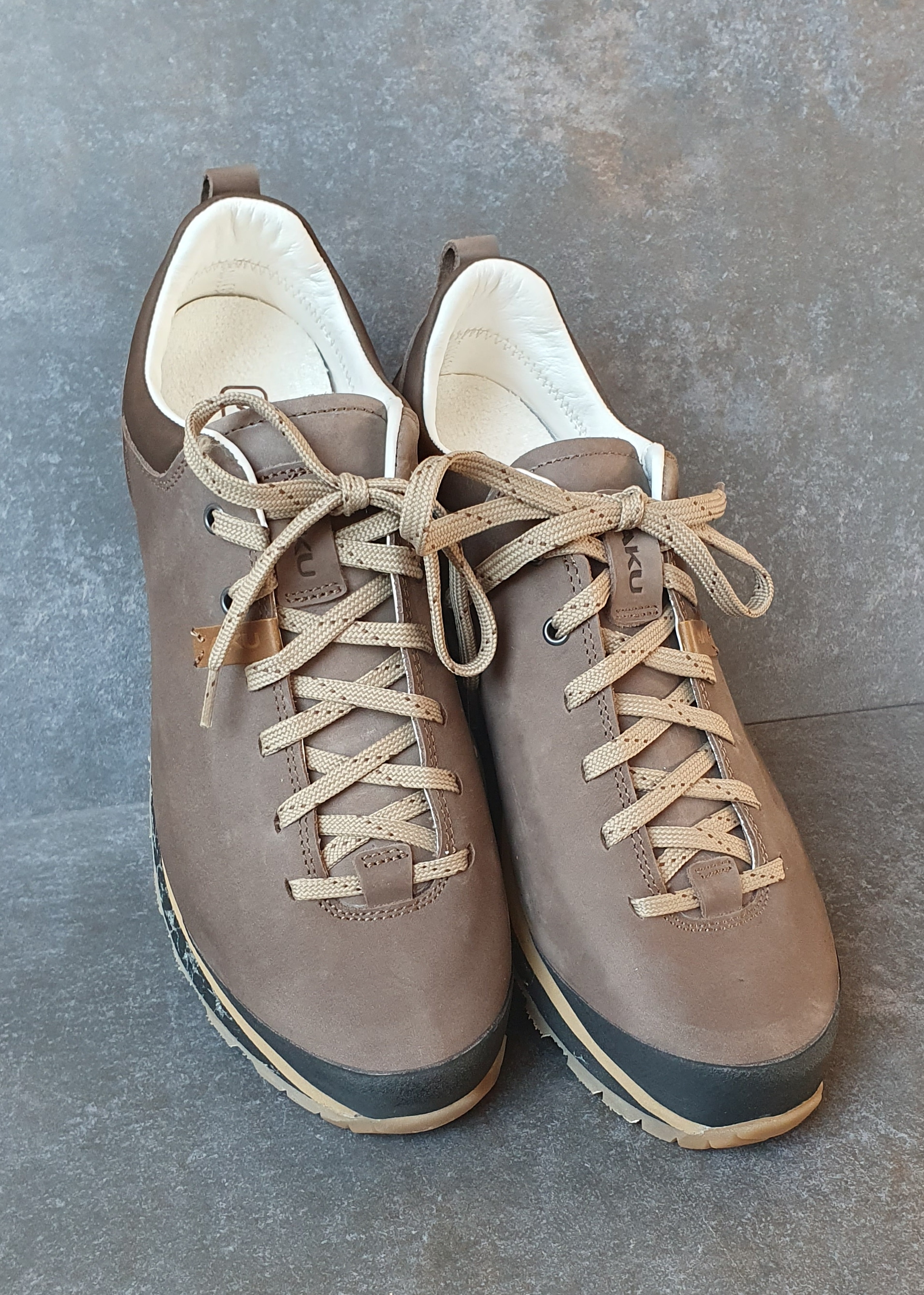 Die Schuhe werden mit zwei Schnürsenkelpaaren in natur und erdorange geliefert. Beide Varianten sehen sehr gut dazu aus - die einzige Schwierigkeit liegt darin, sich immer wieder neu zu entscheiden.
