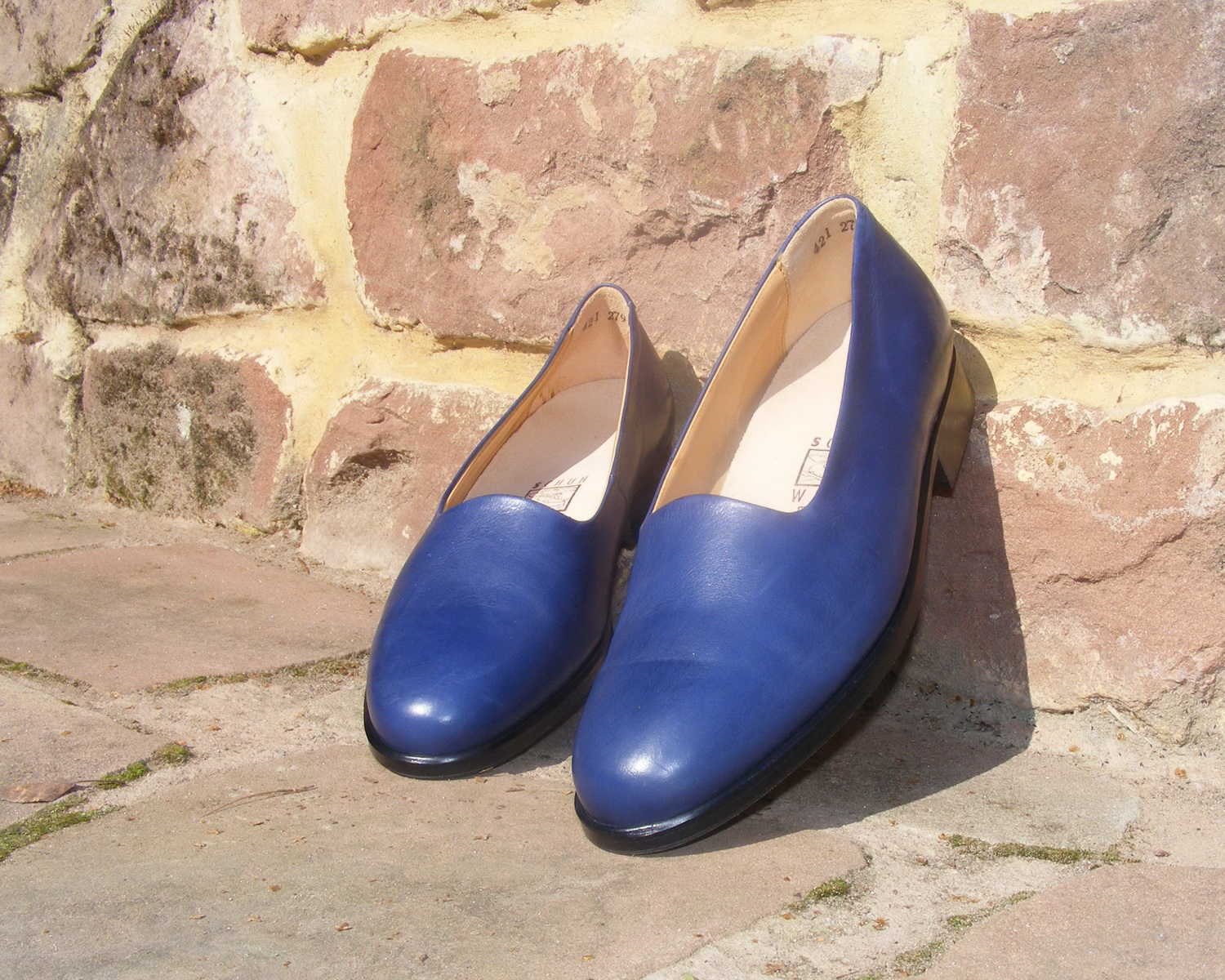 Einfacher, eleganter Schuh in Ballerinaform, bei dem der schön geschwungene Abschluß ein besonderer Blickfang ist. Aus kräftigen, glatten Nappaleder gefertigt, welches erstmal eingelaufen werden muss. Mit eleganter aber fester Ledersohle mit Gummiauflage und einem eingearbeitetem Korkfußbett das für locker-entspanntes Stehen und Gehen sorgt.