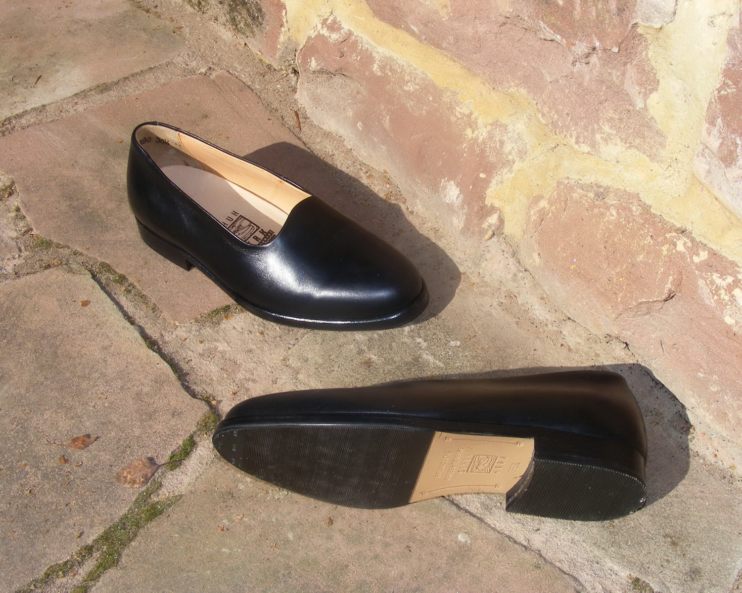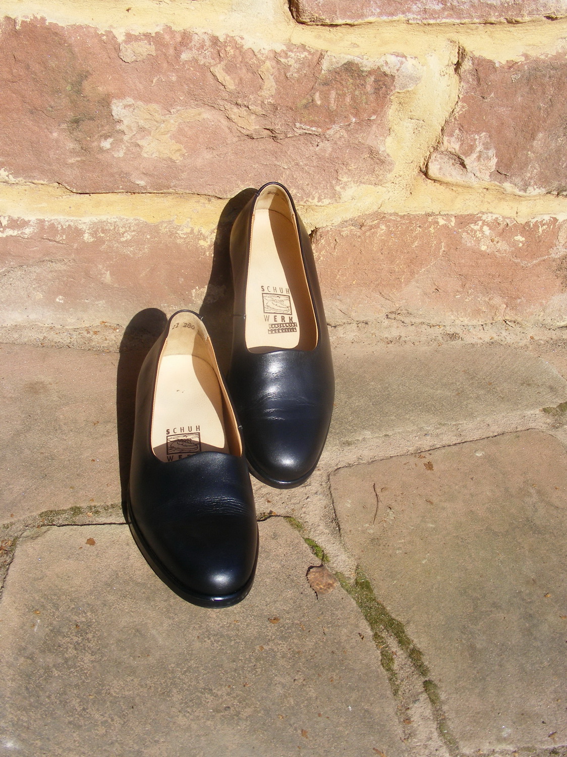 Einfacher, eleganter Schuh in Ballerinaform, bei dem der schön geschwungene Abschluß ein besonderer Blickfang ist. Aus kräftigen, glatten Nappaleder gefertigt, welches erstmal eingelaufen werden muss. Mit eleganter aber fester Ledersohle mit Gummiauflage und einem eingearbeitetem Korkfußbett das für locker-entspanntes Stehen und Gehen sorgt.