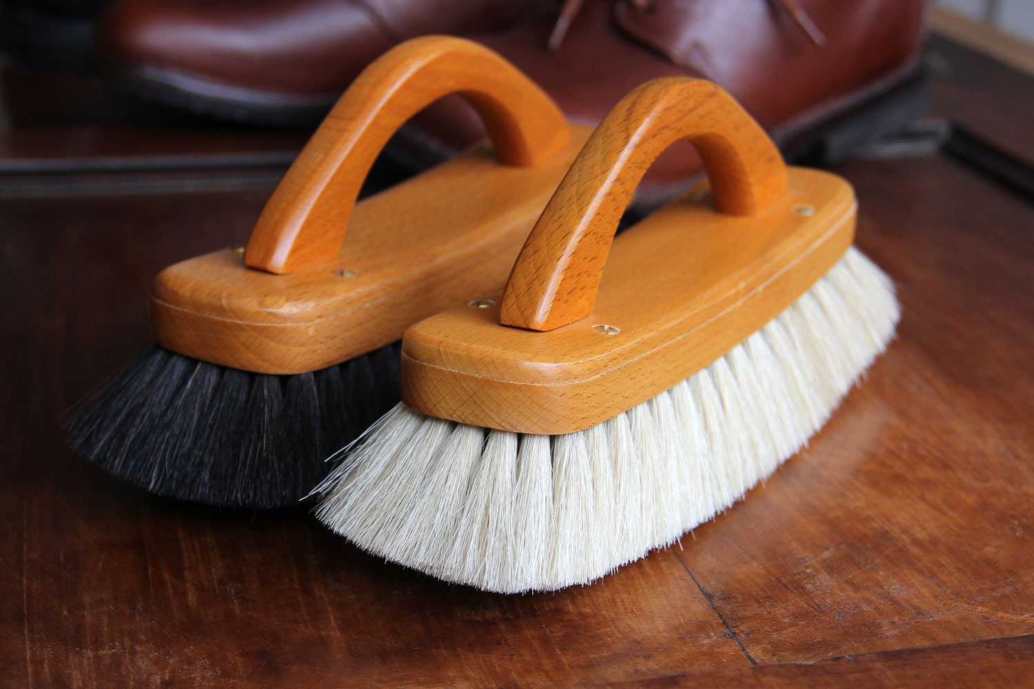 Hochwertige Bürsten zum Auftragen und Einmassieren der Schuhpflegemittel. Die Bürsten sind aus geöltem Buchenholz in schöner und ergonomisch geschwungener Form. Mit hellem oder dunklem Rosshaar. Die Bürsten werden aus heimischen Hölzern und Haaren hergestellt von der deutschen Bürstenmanufaktur Redecker. Länge 18,5 cm