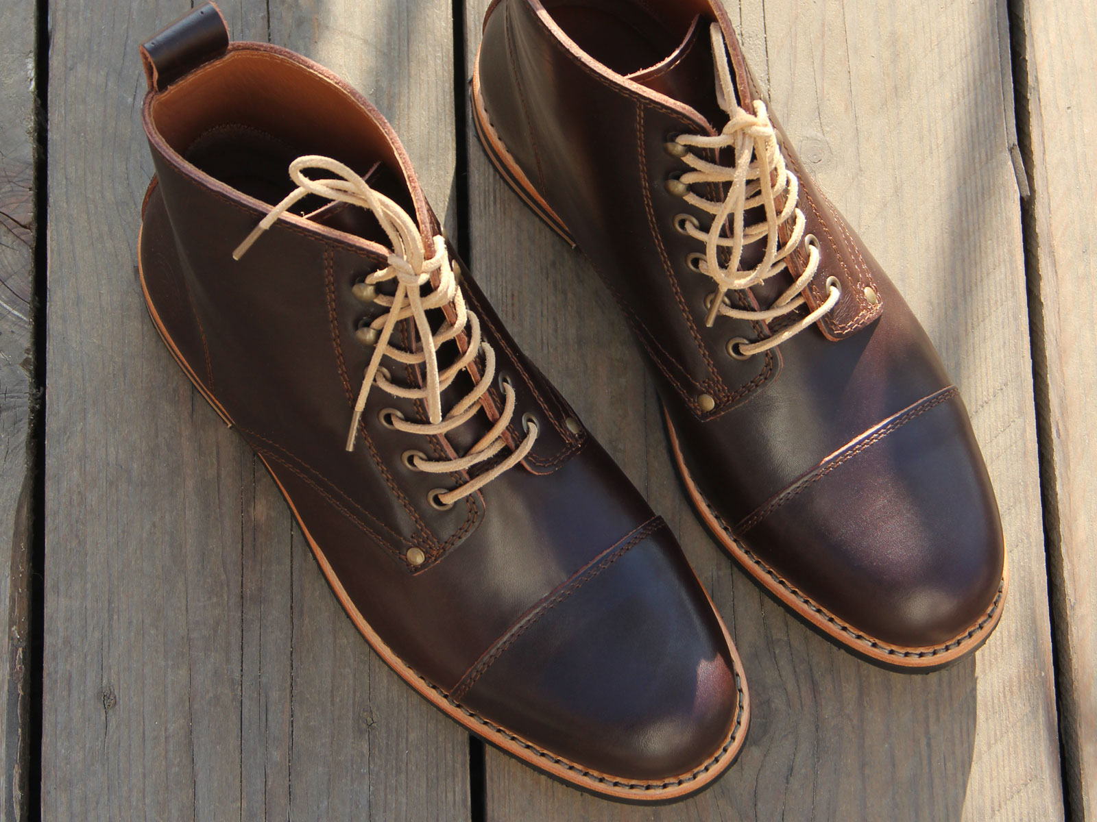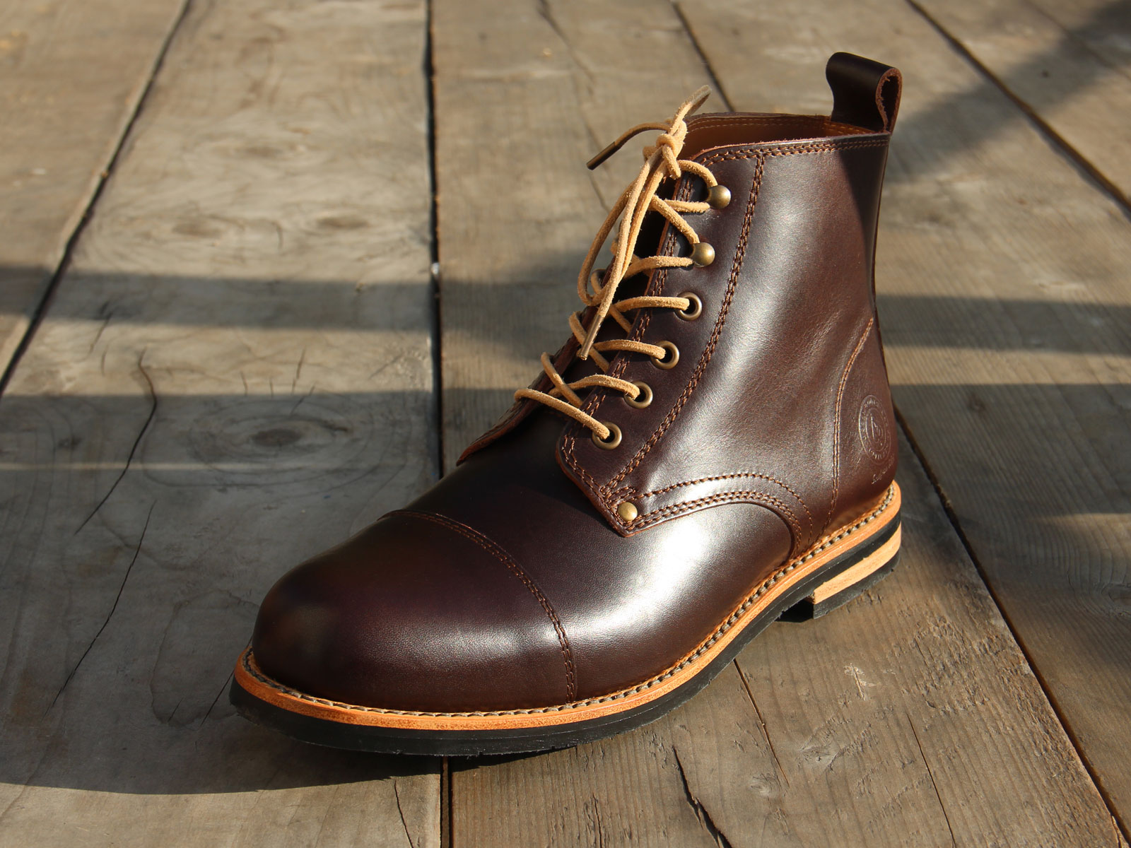 Die Schnitte sind bequem und zeitlos schön, das Oberleder ist ein pflanzlich gegerbtes Rindleder, das mit jedem Tragen einen schöneren Glanz bekommt. Die hohe Schnürung mit Metallösen und Haken gibt dem Fuß einen guten Halt.