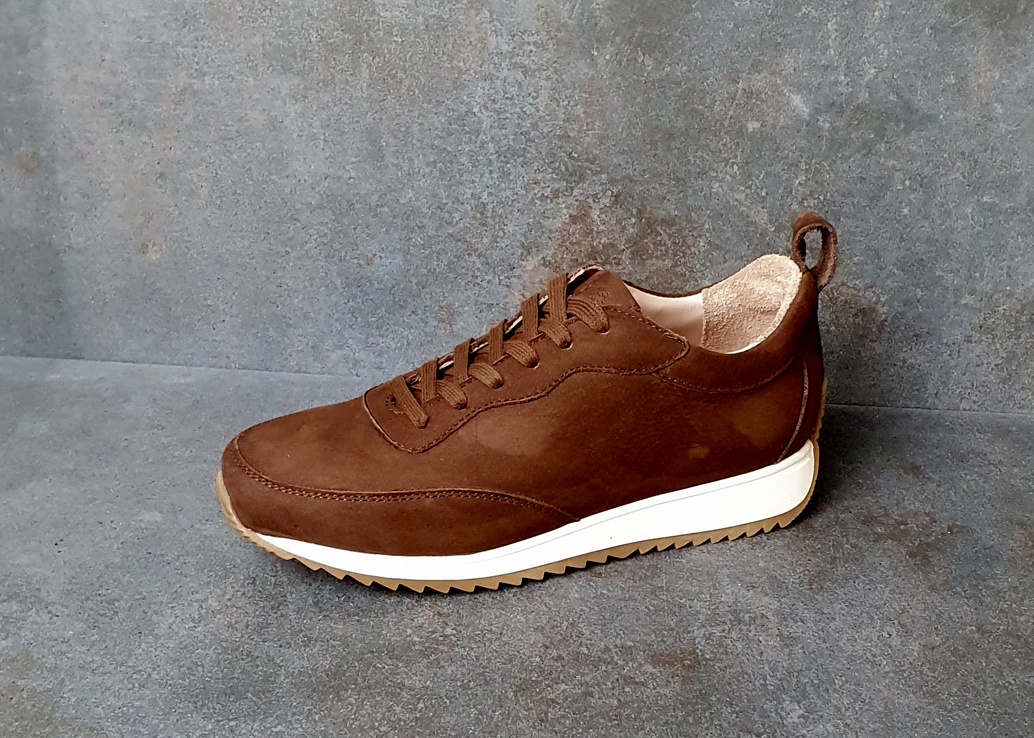 Ein klassicher Ledersneaker für Herren mit hervorragender Passform Von der leichten und sehr gut dämpfenden Laufsohle, über das hochwertige chromfreie Leder, der herausnehmbaren Einlegesohlen und hervorragenden Leistenform sind die Schuhe auf höchstem Nivau durchdacht und hergestellt. Das Obermaterial ist ein weiches atmungsktives Rindleder, kombiniert mit einem elastischen Textil für höchsten Tragekomfort. In einer globalen Wirtschaft, die ihr KNOW-How auslagert, hat sich "Nature is Future" entschieden die Sneakers in ihren Schuhmanufakturen in Sarrebourg, Frankreich, sowie in Viana do Castelo, Portugal zu entwickeln und herzustellen. Für einen langlebigen, orthopädisch durchdachten und wiederbesohlbaren Sneaker werden die besten recycelten Materialien und das Wissen erfahrener Schuhmacher genutzt. Rundum ein nachhaltiger Sneaker -100% Made in Europe vom Design bis zur lokalen Produktion.