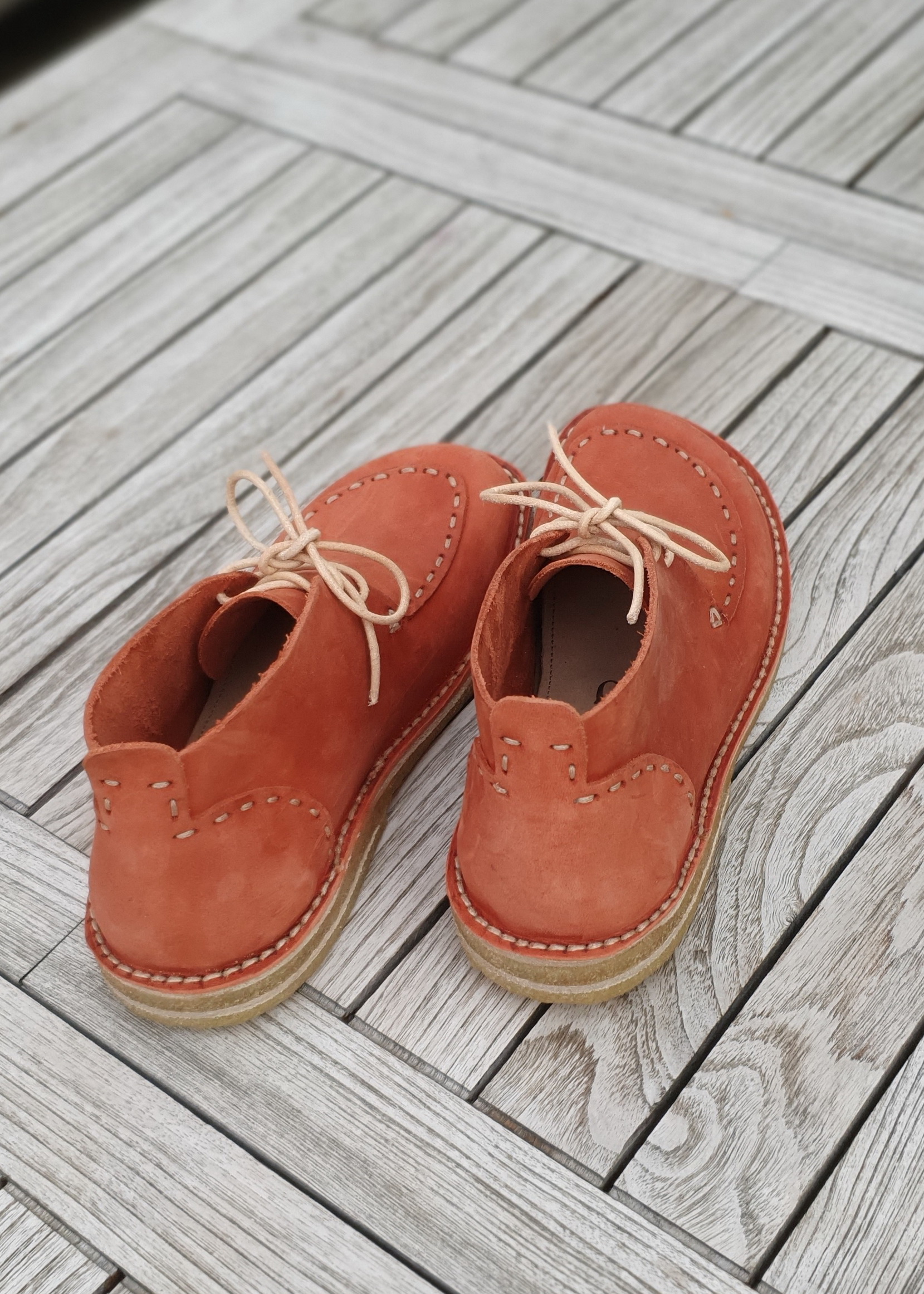 Nachhaltiger Bio Damenstiefel Herrlich bequeme und weiche Schnürboots aus chromfreiem Leder mit Naturkreppsohle, die man zu jeder Jahreszeit anziehen kann. Einfach schön und focusiert auf das Wesentliche: - gefertigt aus samtig weichem, über zwei Millimeter dickem, pflanzlich gegerbtem und hautverträglichem Rindnubukleder;- das Leder wird mit einer Doppelnaht mit der Lederzwischensohle vernäht: eine Verbindung die garantiert hält;- Naturkreppsohle für umweltschonendes und angenehmes Gehen. Diese Naturboots sehen nicht nur gut aus, sie sind es auch: komplett Deutschland hergestellt - hochwertiges Material, ohne schädliche Chemie, ohne Plastik und synthetische Materialien, ohne EVA, TR oder TPU, ohne kaschierte Kunstoffteile oder Schaumstoffe, ohne aufgesprühte Duftstoffe oder Farbschichten.... Nur Leder, Garn, Naturkrepp (und eine kleine Niete, eine Gelenkfeder aus Buchenholz und Klebstoff für die Sohlenbefestigung)