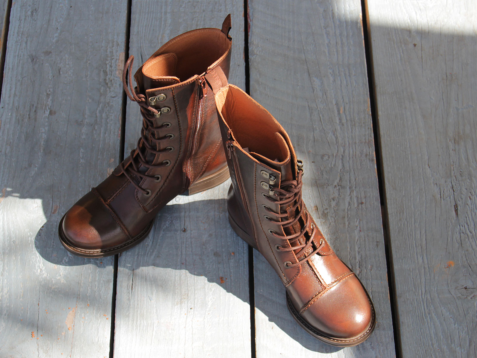 Moderner Schnürboot mit Plateausohle umweltfreundlich hergestellt Bequeme Form, nordisches Design: Schnürboot mit Reißverschluss aus dem Ökoprogramm von Ten Points. Die besondere Bearbeitung des pflanzlich gegerbten Rindleders gibt den Boots einen schönen Glanz und einen lässigen Used-Look. Das weiche Lederfutter sorgt für ein atmungsaktives Klima im Schuh, der Knöchelbereich ist besonders weich gepolstert. Die prägnante Schnürung und die dicke Profilsohle bestimmen die Optik und damit liegen die robusten umweltfreundlich hergestellten Boots ganz im Trend: man trägt sie zu weiten Hosen und langen Blumenkleidern, kombiniert mit groben Strickpullis oder weiten Mänteln. Die Sohle ist aus thermoplastischem Kautschuk – rutschfest, mit geringem Abrieb und guten Tritteigenschaften. Die Innensohle ist gepolstert und herausnehmbar. CLEO gehört zum Ökoprogramm von Ten Points, ein Hersteller, der Funktionalität mit viel Komfort verbindet und langlebige Materialien verarbeitet. Die Boots werden in Schweden entworfen und in Portugal gefertigt.