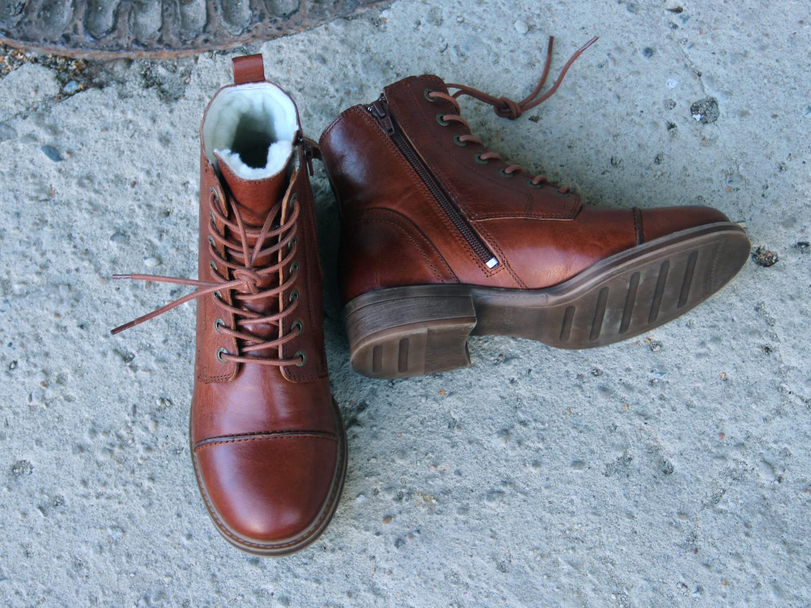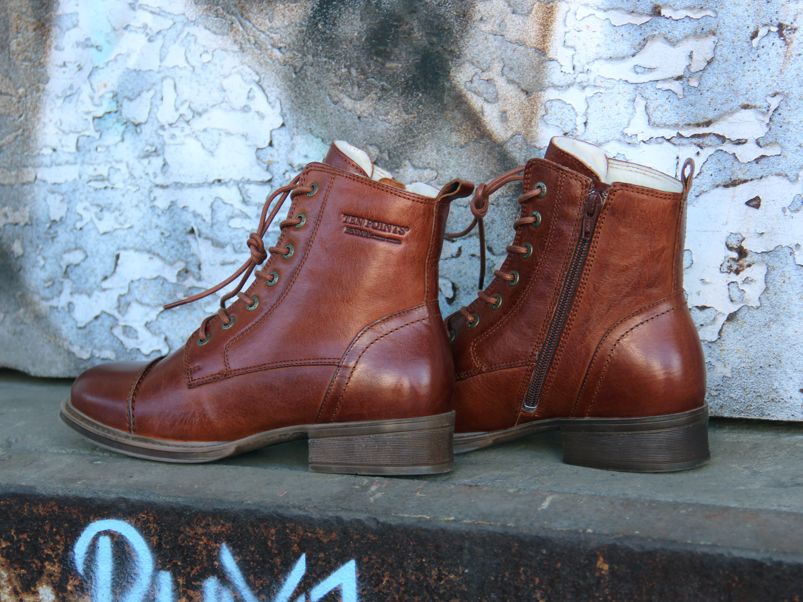 Schnürstiefelette mit Reißverschluß und kleinem Absatz Klassische Schnürstiefelette mit einem chromfreiem Lederfutter. Die hohe Schnürung sorgt für guten Halt, ein seitlicher Reißverschluss und eine Anziehschlaufe erleichtern das An- und Ausziehen. Das pflanzlich gegerbte Rindleder ist sehr robust verarbeitet und bekommt mit der Zeit eine schöne Patina. Um den besonderen Look von Struktur und Glanz zu bekommen, wird es in verschiedenen Techniken gebürstet und gewachst. TYRA R hat eine rutschhemmende Gummi-Sohle mit einem kleinem, etwa 2,5 cm hohen Absatz. Modernes, nordisches Design – fair und nachhaltig produziert aus dem Ökoprogramm von Ten Points. Die Schuhe werden in Schweden entworfen und in Portugal gefertigt. Das Label verbindet Funktionalität mit viel Komfort und setzt auf langlebige Materialien.