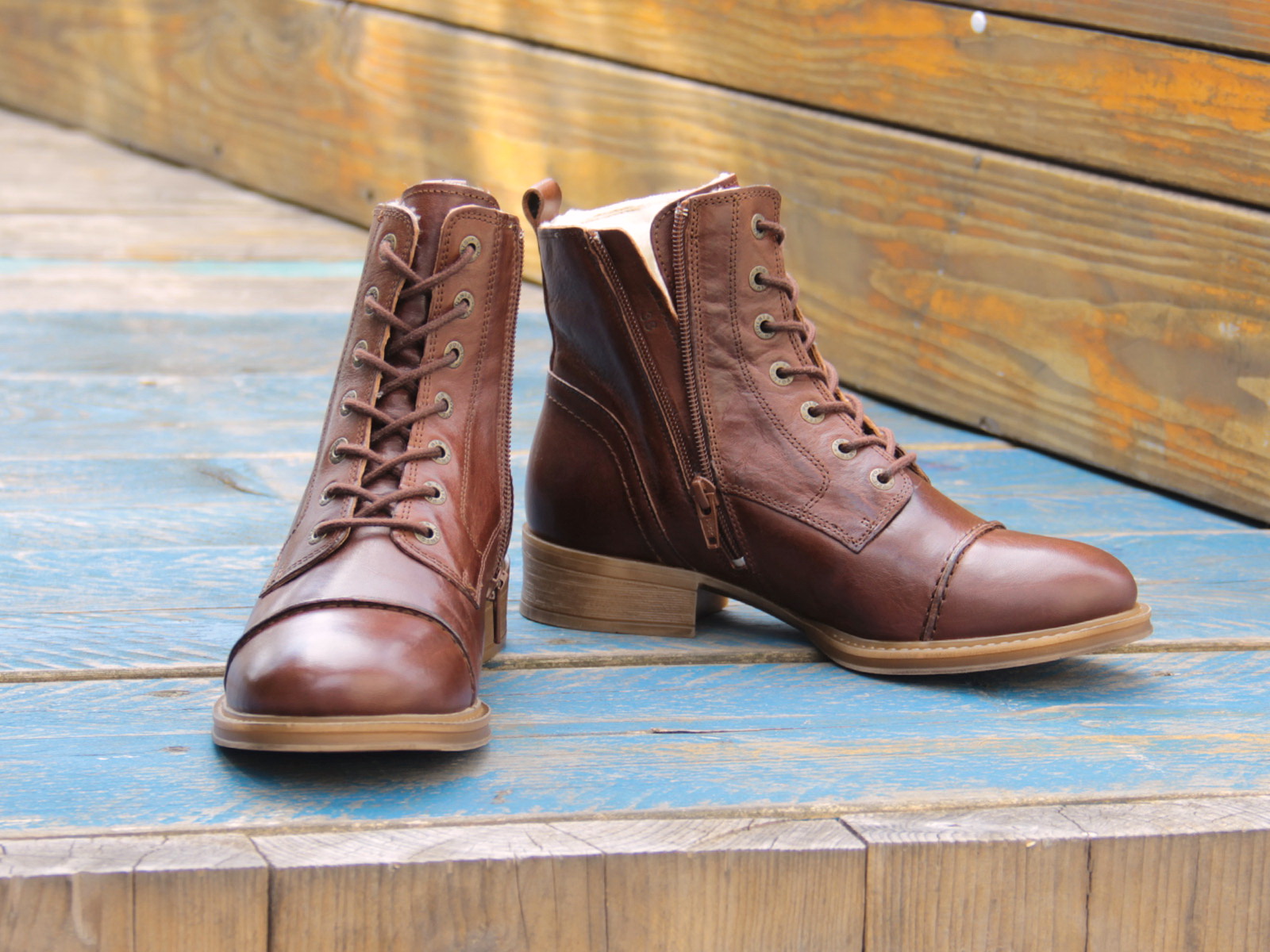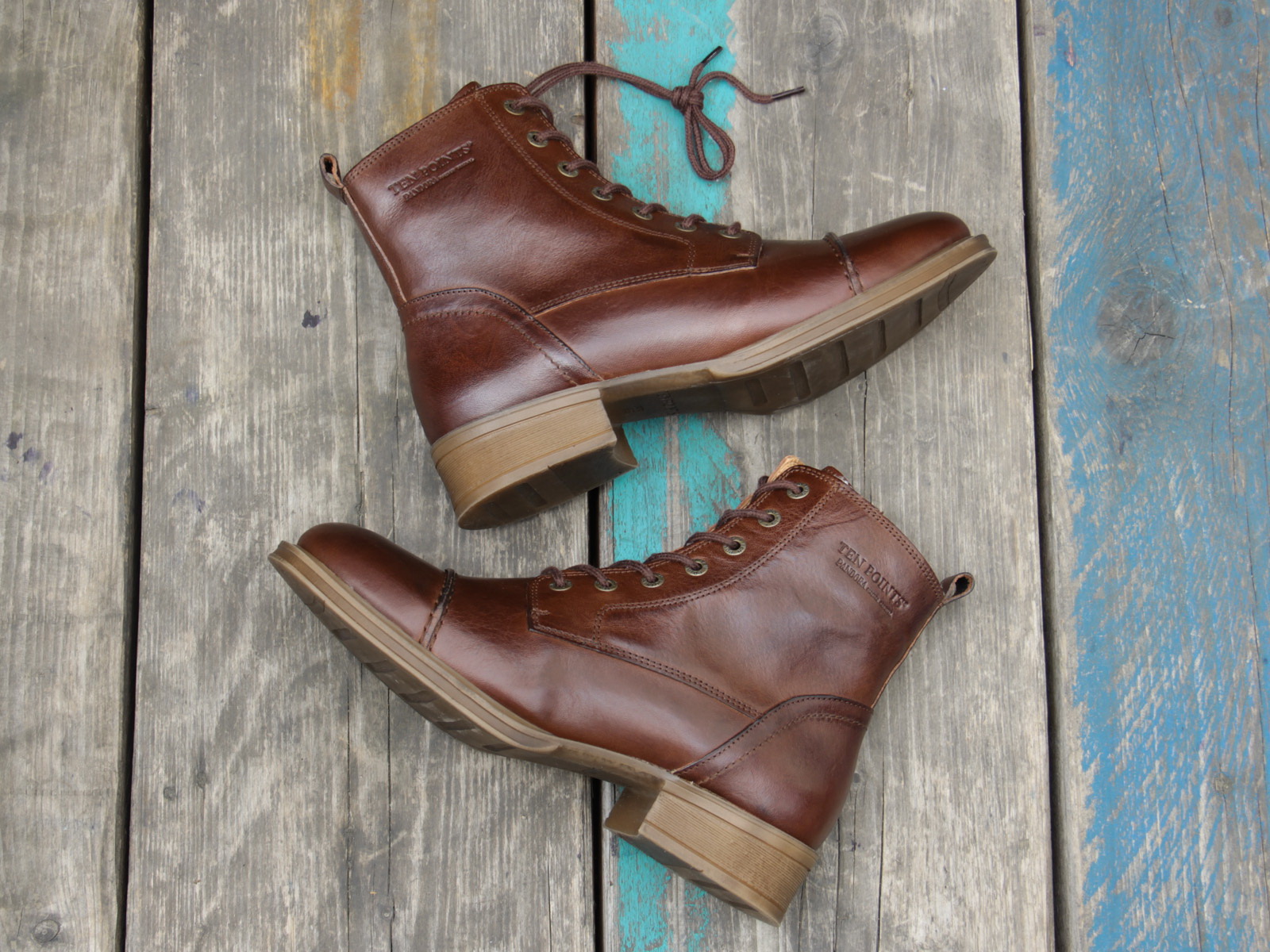 Schnürstiefelette mit Reißverschluß und kleinem Absatz Klassische Schnürstiefelette mit einem chromfreiem Lederfutter. Die hohe Schnürung sorgt für guten Halt, ein seitlicher Reißverschluss und eine Anziehschlaufe erleichtern das An- und Ausziehen. Das pflanzlich gegerbte Rindleder ist sehr robust verarbeitet und bekommt mit der Zeit eine schöne Patina. Um den besonderen Look von Struktur und Glanz zu bekommen, wird es in verschiedenen Techniken gebürstet und gewachst. TYRA R hat eine rutschhemmende Gummi-Sohle mit einem kleinem, etwa 2,5 cm hohen Absatz. Modernes, nordisches Design – fair und nachhaltig produziert aus dem Ökoprogramm von Ten Points. Die Schuhe werden in Schweden entworfen und in Portugal gefertigt. Das Label verbindet Funktionalität mit viel Komfort und setzt auf langlebige Materialien.