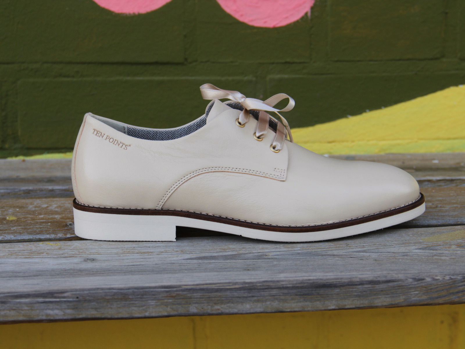Hochwertige Verarbeitung - Durchgenäht und dadurch sehr leicht und flexibel Nordisches Design, zeitlose Optik, hochwertige Verarbeitung: SIGNE aus dem Ökoprogramm des schwedischen Herstellers Ten Points. Die hellen Sohlen und schöne Details – wie die prägnanten Nähte – machen den Casual-Look fürs Frühjahr perfekt. Die klassische Schnürschuhform erhält durch das robuste Glattleder mit leichtem Glanz und die besondere Akzentuierung mit dünnen Schnürsenkeln und feinen Ziernähten eine elegante Note. Das Rindleder ist pflanzlich gegerbt und bekommt mit der Zeit eine schöne Patina. Für den besonderen Look von Struktur und Glanz wird es in verschiedenen Techniken gewachst und gebürstet. Die gepolsterte Innensohle ist mit weichem, chromfreiem Futterleder bezogen und herausnehmbar. Auch die Laufsohle ist aus pflanzlich gegerbtem Leder mit einer Auflage aus Gummi. Sohle und Schaft sind miteinander vernäht. Diese sogenannten «Blake-Machart» kommt ohne Rahmennaht und Zwischensohle aus, was durchgenähte Schuhe sehr leicht und flexibel macht. Ten Points Schuhe werden in Schweden entworfen und nachhaltig und unter fairen Bedingungen in Portugal gefertigt. Das Label steht für hochwertige Schuhmacherkunst mit Tradition, verbindet Funktionalität mit viel Komfort und setzt auf langlebige Materialien.