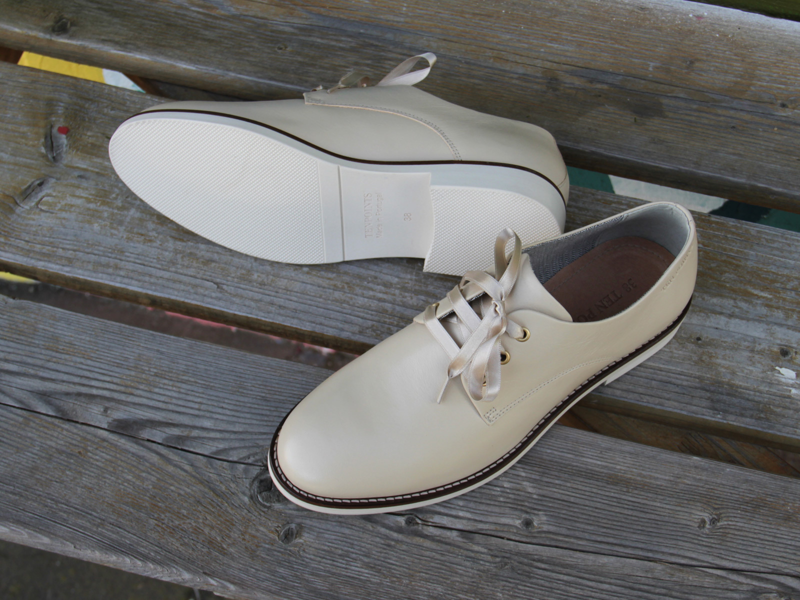 Nordisches Design, zeitlose Optik, hochwertige Verarbeitung: VERA aus dem Ökoprogramm von Ten Points. Die hellen Sohlen und die elegante Art machen den Casual-Look fürs Frühjahr perfekt.Durch das robuste Glattleder mit seinem besonderem Glanz und dem Detail der schönen Seidenschnürsenkel erhält der klassische Schnürschuh eine elegante Note. Das Rindleder ist pflanzlich gegerbt und bekommt mit der Zeit eine schöne Patina. Für den besonderen Look von Struktur und Glanz wird es in verschiedenen Techniken gewachst und gebürstet Die gepolsterte, mit weichem Futterleder bezogene Innensohle ist nicht herausnehmbar. Innen besteht der Schuh aus Textilfutter mit schönem Muster . Ob unter ein elegantes Business- Outfit, einer schönen Sommerhose oder auch unter Jeans, VERA ist vielseitig kombinierbar. Ten Points Schuhe werden in Schweden entworfen und nachhaltig und unter fairen Bedingungen in Portugal gefertigt. Das Label steht für hochwertige Schuhmacherkunst mit Tradition, verbindet Funktionalität mit viel Komfort und setzt auf langlebige Materialien