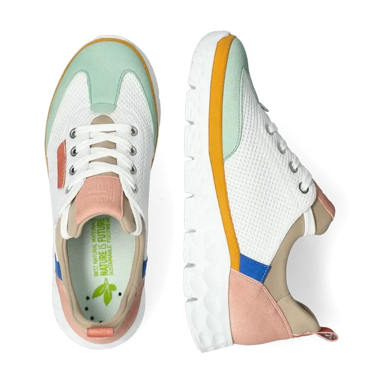 Was auch immer Ihre Outdoor-Aktivitäten sind, der Sneaker «Wing» ist zu allem bereit! Die überzeugende Passform, eine herausnehmbare Einlegesohle mit SOFT-AIR-Technologie und die elastische Außensohle sorgen für entspanntes Gehen. Von der erneuerbaren Sohle über das atmungsaktive Textilmaterial bis zu den Schnürsenkeln aus 100% recyceltem Polyester ist der Schuh ökologisch durchdacht. Bei der Produktion der langlebigen Sneaker werden recycelte Materialien eingesetzt, wo immer es möglich ist. Das Label «Nature is Future» steht für Transparenz in der Fertigung und 100% Made in Europe – vom Design bis zur lokalen Produktion. Dieses Modell ist auch für Frauen die unter Hallux valgus leiden geeignet. Da an der entsprechenden Stelle keine Naht entlang führt und der Schuh sehr weich ist, lässt sich dieser Schuh auch super angenehm mit Hallux tragen.