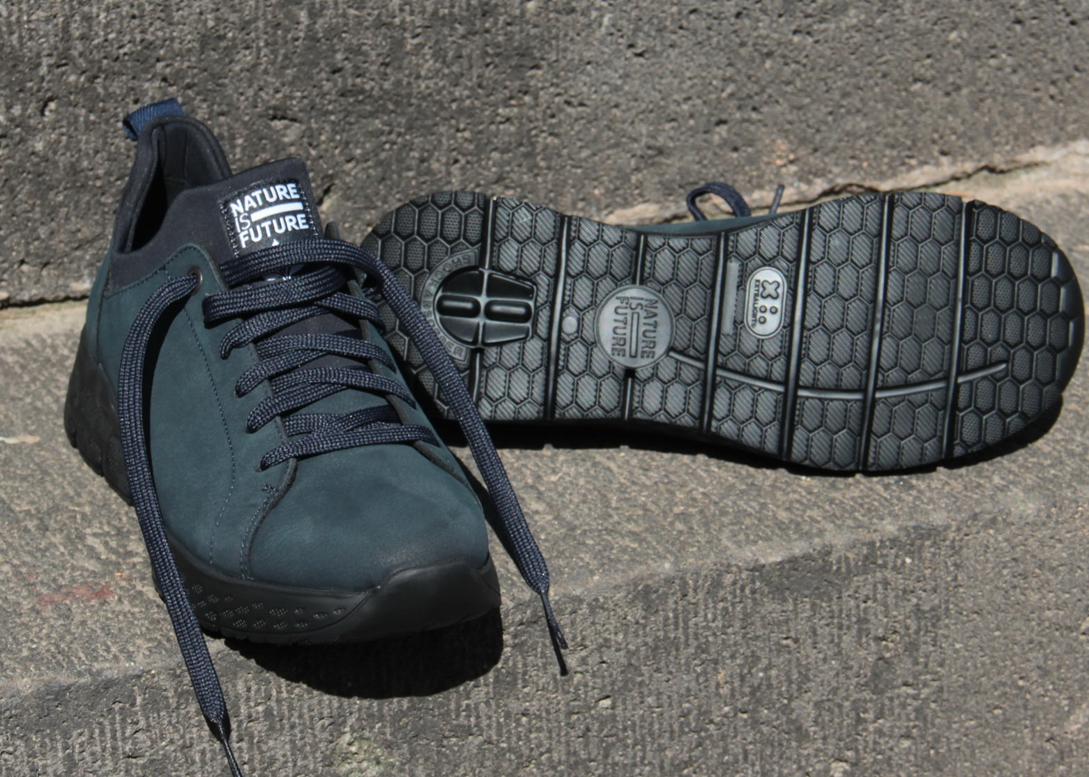 In einer globalen Wirtschaft, die ihr KNOW-How auslagert, hat sich "Nature is Future" entschieden die Sneakers in ihren Schuhmanufakturen in Sarrebourg, Frankreich, sowie in Viana do Castelo, Portugal zu entwickeln und herzustellen. Für einen langlebigen, orthopädisch durchdachten und wiederbesohlbaren Sneaker werden die besten recycelten Materialien und das Wissen erfahrener Schuhmacher genutzt.