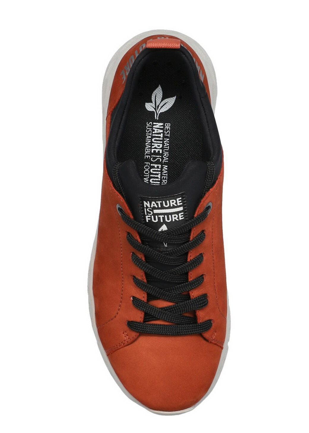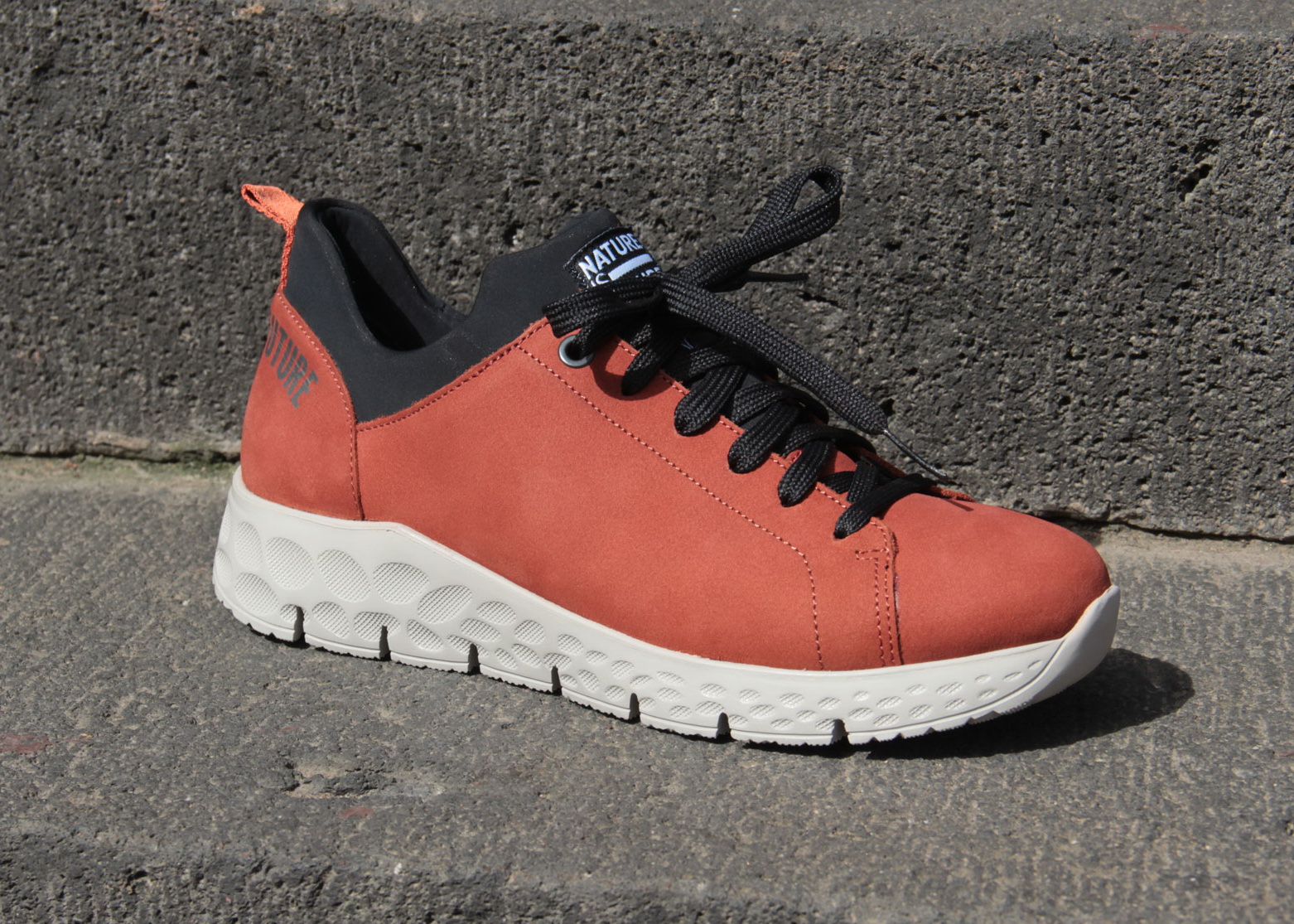 Ein klassicher Ledersneaker für Damen in trendigen Farben passend zur aktuellen Mode. Von der leichten und sehr gut dämpfenden Laufsohle, über das hochwertige chromfreie Leder, der herausnehmbaren Einlegesohlen und hervorragenden Leistenform sind die Schuhe auf höchstem Nivau durchdacht und hergestellt. Das Obermaterial ist ein weiches atmungsktives Rindleder, kombiniert mit einem elastischen Textil für höchsten Tragekomfort. In einer globalen Wirtschaft, die ihr KNOW-How auslagert, hat sich "Nature is Future" entschieden die Sneakers in ihren Schuhmanufakturen in Sarrebourg, Frankreich, sowie in Viana do Castelo, Portugal zu entwickeln und herzustellen. Für einen langlebigen, orthopädisch durchdachten und wiederbesohlbaren Sneaker werden die besten recycelten Materialien und das Wissen erfahrener Schuhmacher genutzt. Rundum ein nachhaltiger Sneaker -100% Made in Europe vom Design bis zur lokalen Produktion. Dieses Modell ist auch für Frauen die unter Hallux valgus leiden geeignet. Da an der entsprechenden Stelle keine Naht entlang führt und der Schuh sehr weich ist, lässt sich dieser Schuh auch super angenehm mit Hallux tragen.